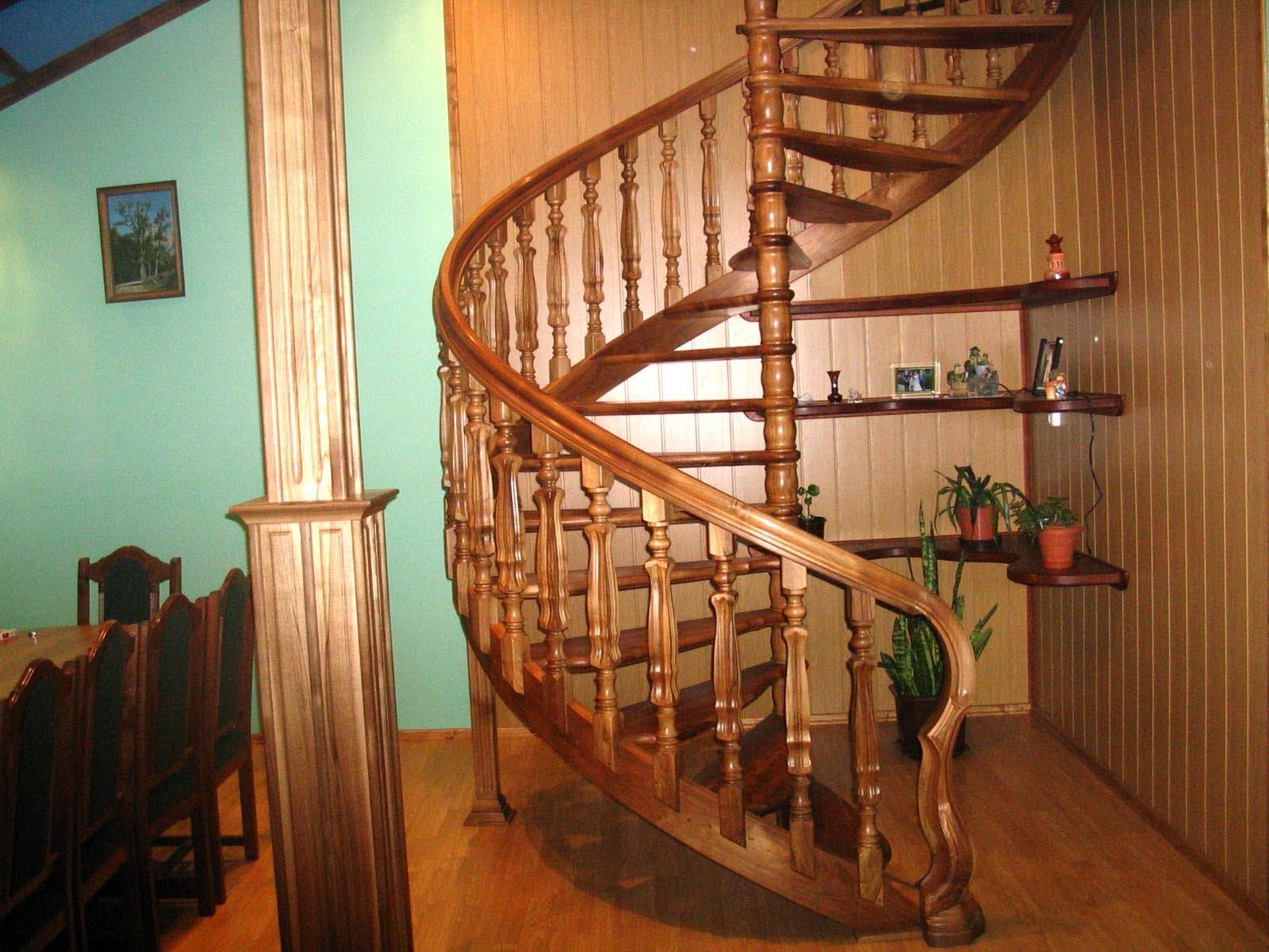 на тетивах, на двух косоурах, с подступенком, без подступенка, с гнутыми поручнями или гнутыми косоурами/тетивами, индивидуальные орнаменты и элементы выточенные на токарном станке или на ЧПУ |
