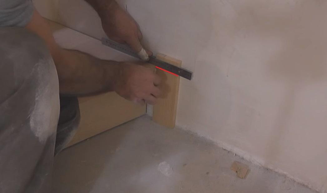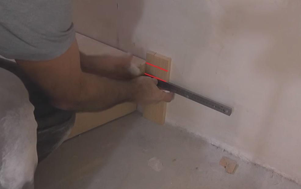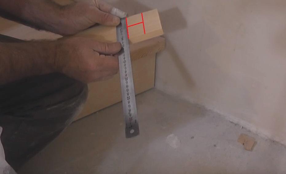 Вновь делаем замеры выступа ступени, чтобы сделать соответствующий вырез.