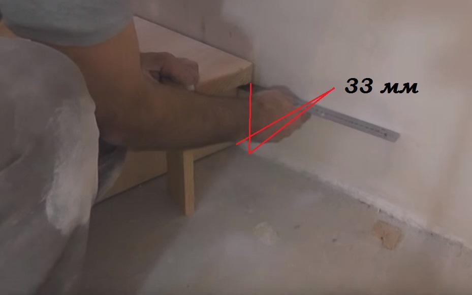 Замеряем расстояние от подступенника до торца ступени. У нас оно равно 33 мм.