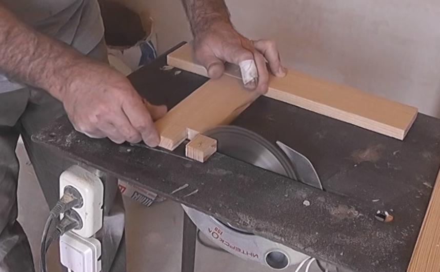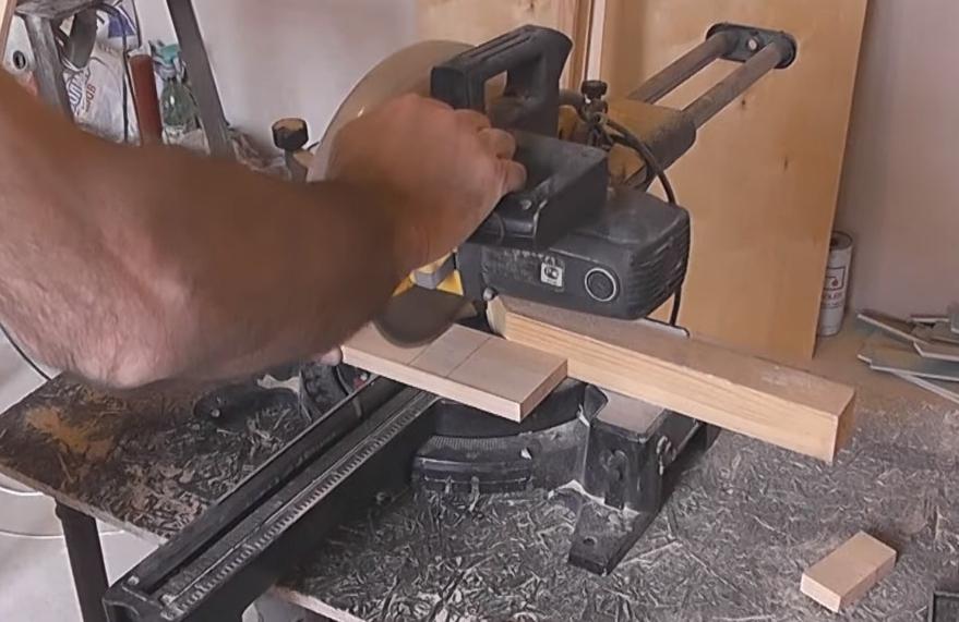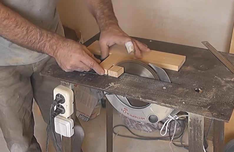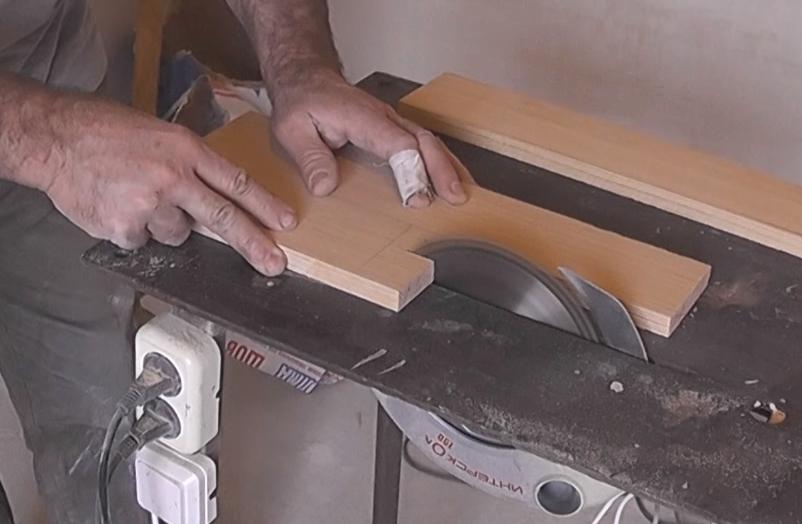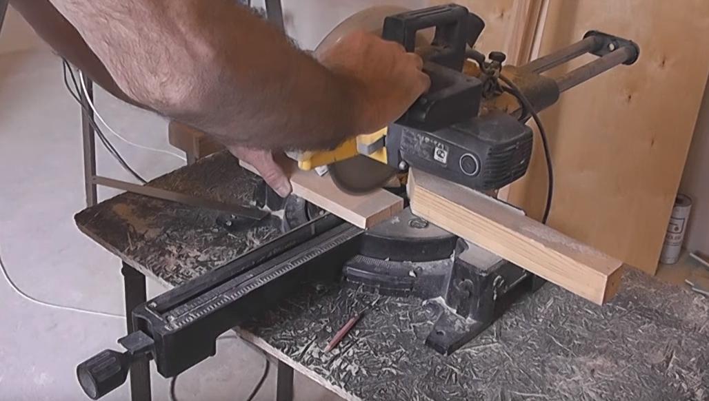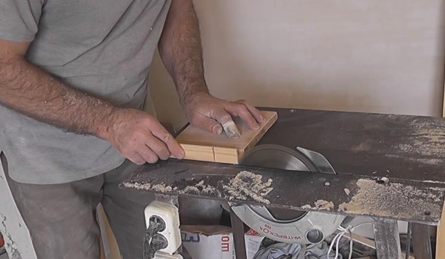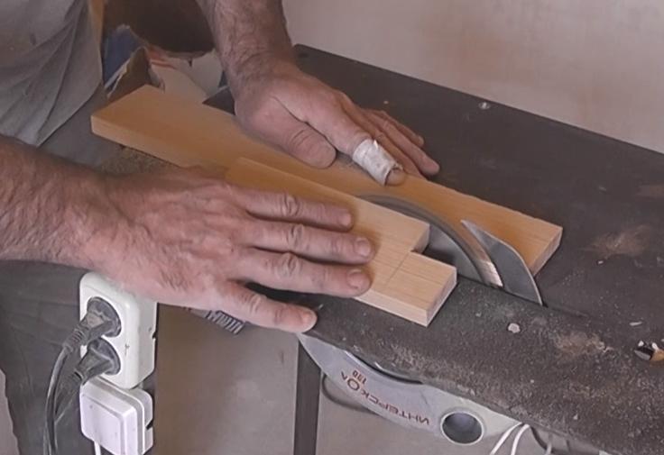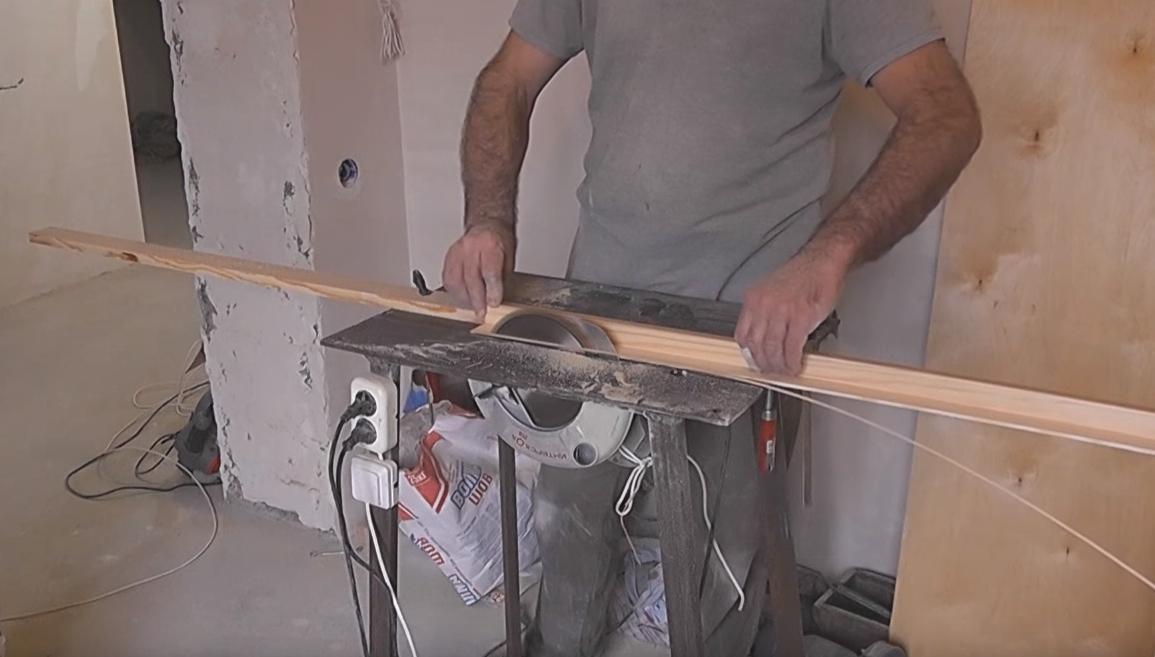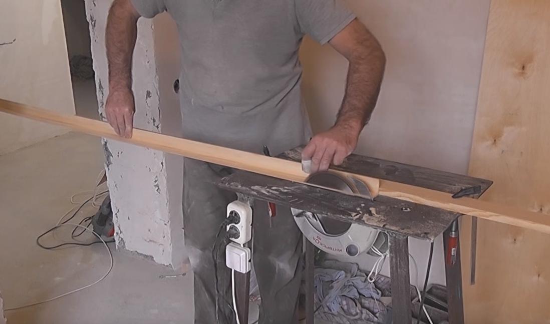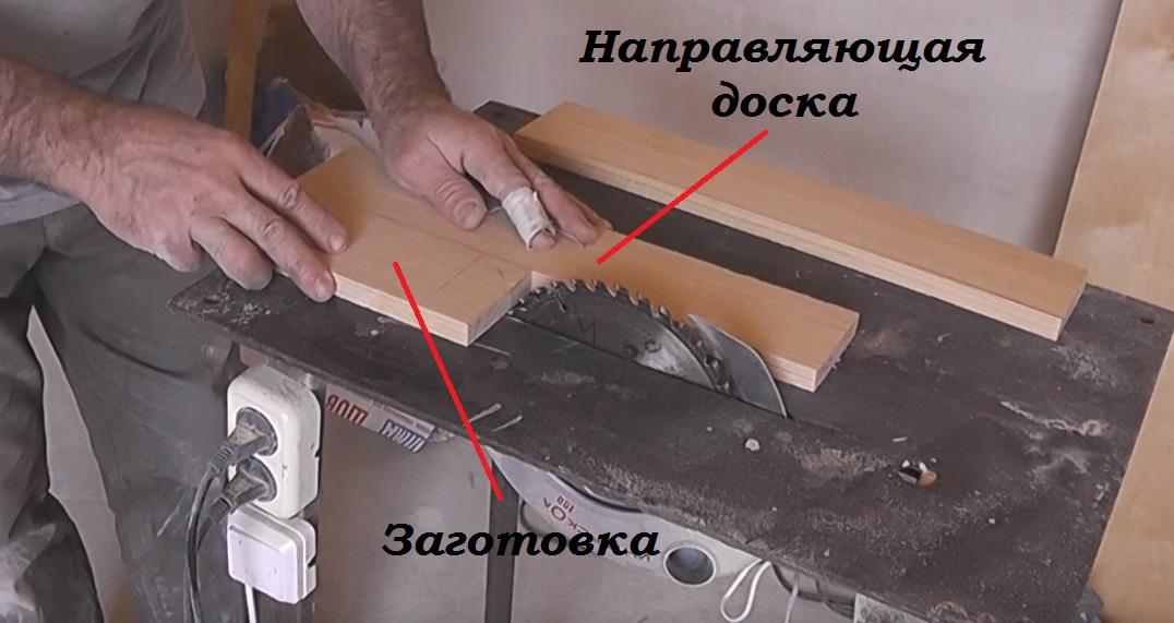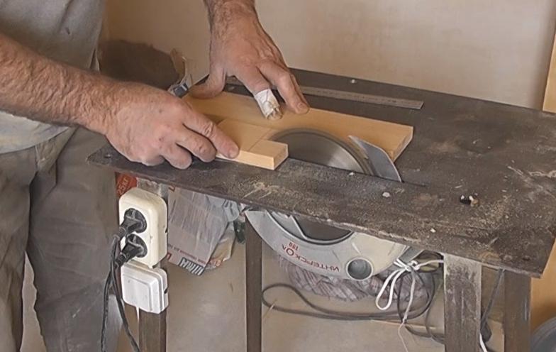 Обрезаем доску-заготовку при помощи циркулярной пилы.