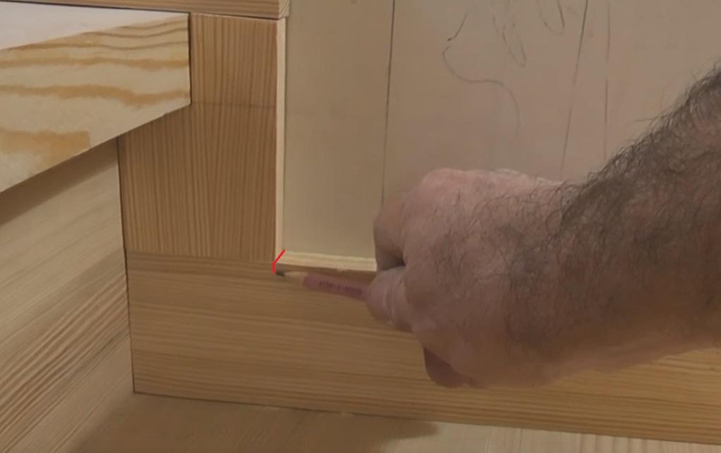 Закругление на углу горизонтальной планки можно обозначить, обведя карандашом окружность по шайбе или монетке, подходящего диаметра.