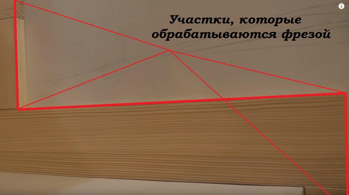 Угол горизонтальной планки обрабатывается фрезой именно до этой отметки.