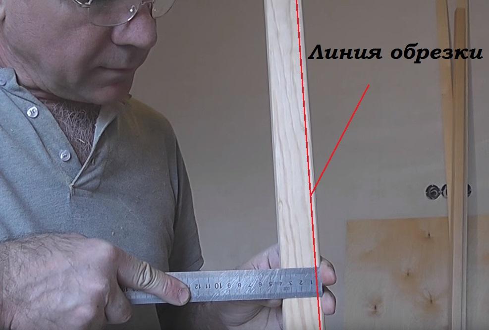 Чтобы обеспечить максимально ровную обрезку, используем вторую доску в качестве направляющей.
