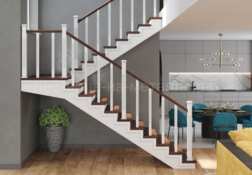 Классическая лестница. Лестница закрытого типа с площадкой и подлестничным пространством. Каркас лестницы из листа металла 6 мм. 18 ступеней и ограждения 5 п/м. из "Дуба-кантри". Фальшкосоур и подступенники из МДФ, покраска под эмаль.