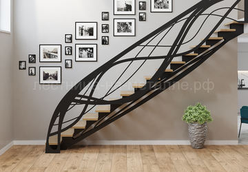 Уникальность, свойственная каждому человеку, послужила отправной точкой в создании лестницы. Плавные линии, плывущие в пространстве, хорошо сочетаются с вертикальными стойками.