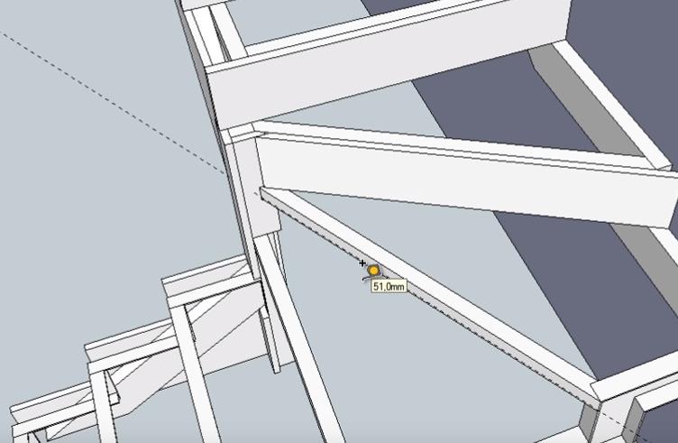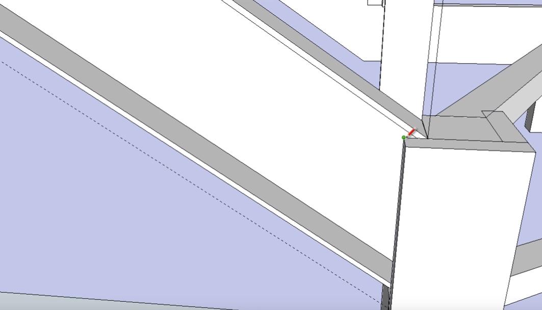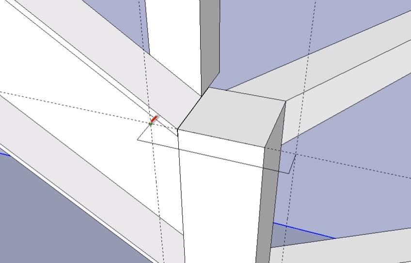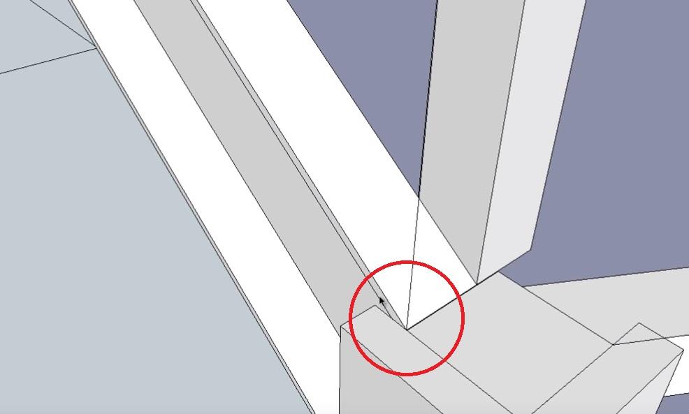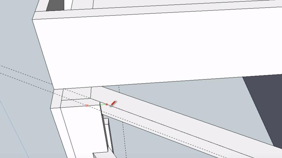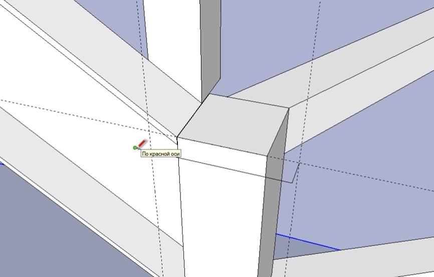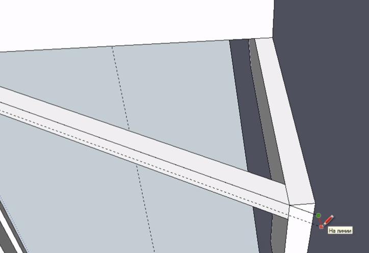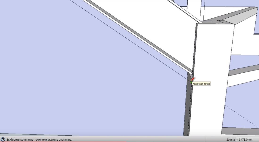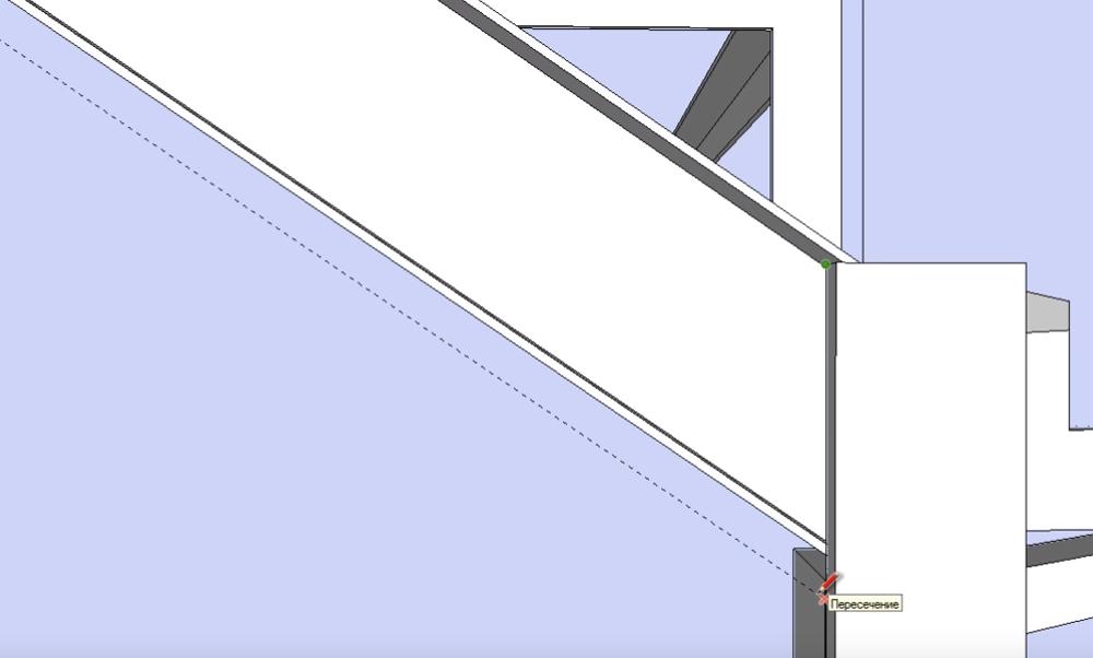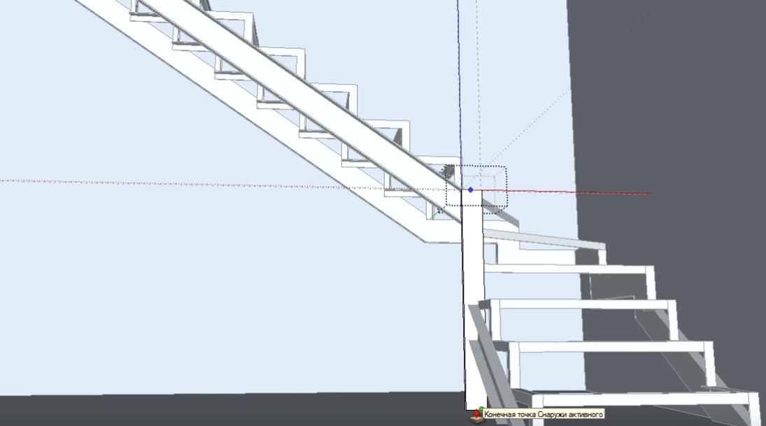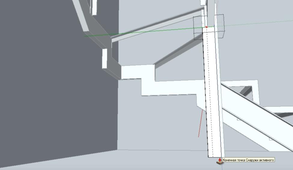 Не снимая выделение с объекта, обводим линиями место крепления перемычки второй забежной ступени к опорному столбу. Линии проводим на небольшом (3-5 мм) удалении от уголка перемычки.
