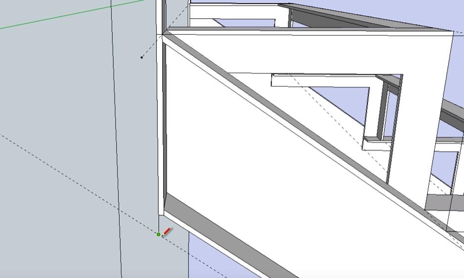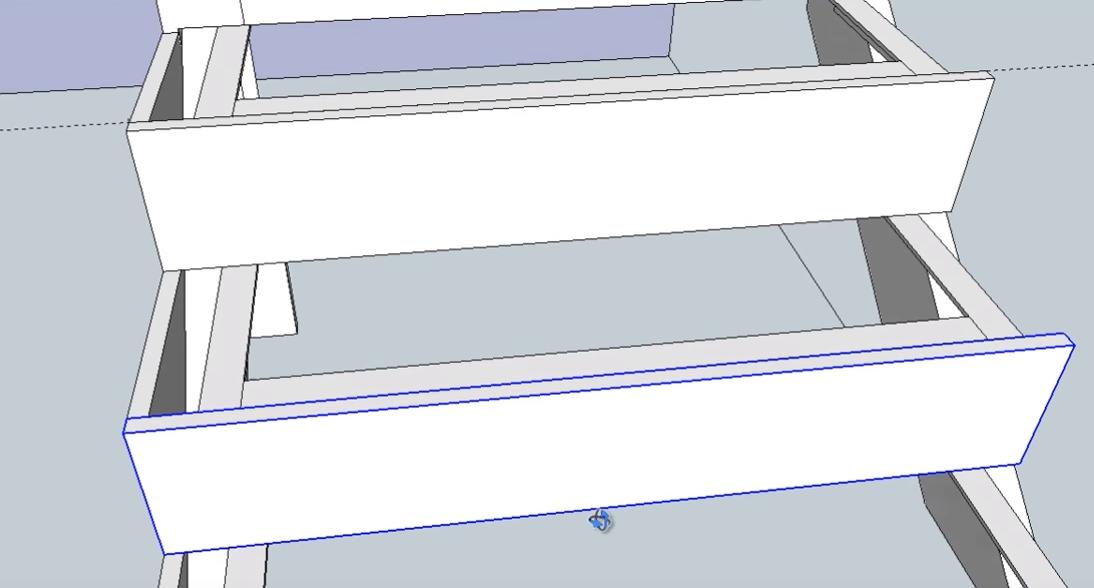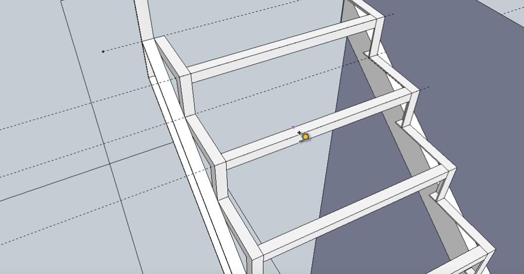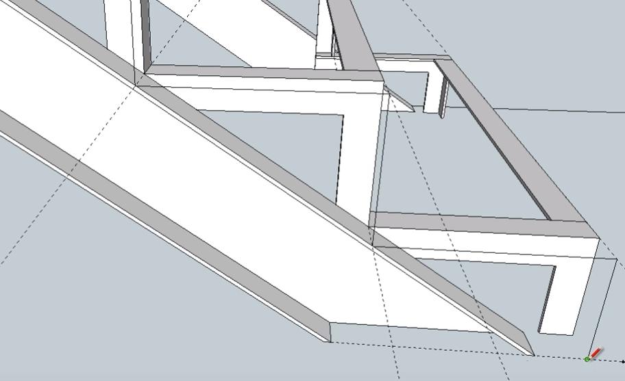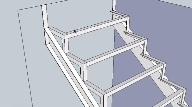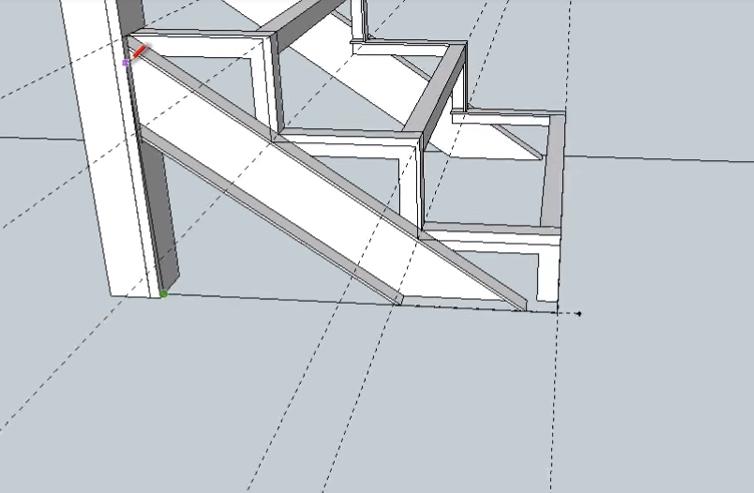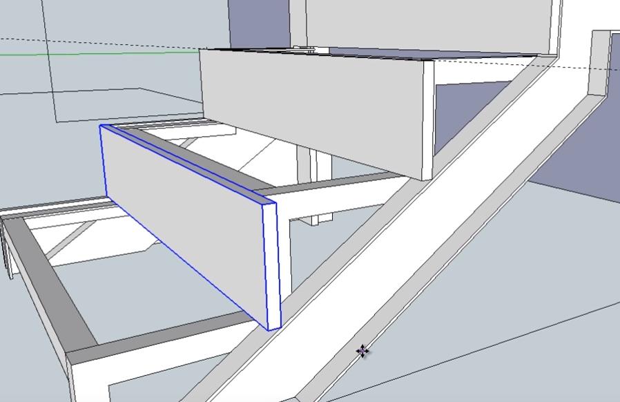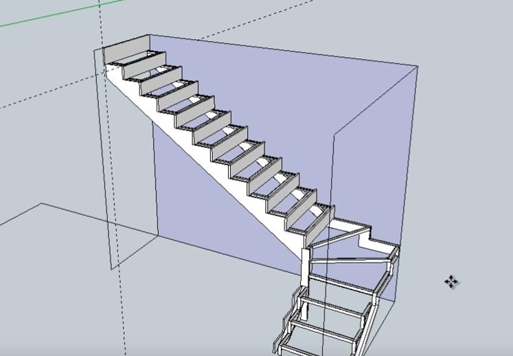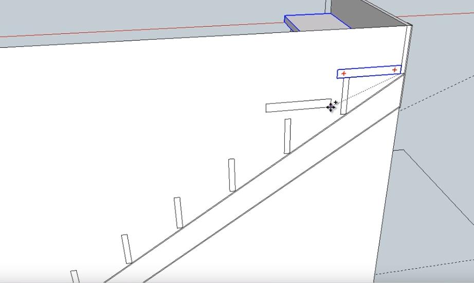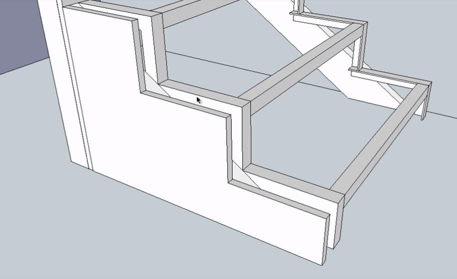 Следующие два подступенника нижнего пролета лестницы идентичны по размерам. Поэтому сначала делаем один (используем инструменты “Прямоугольник” и Push-Pull”), а второй просто копируем.