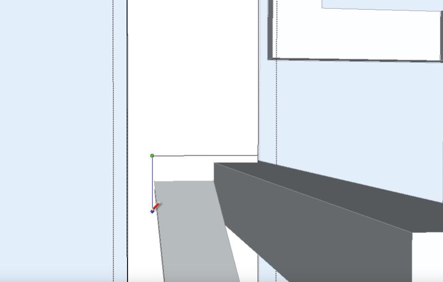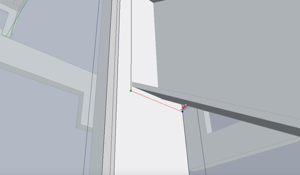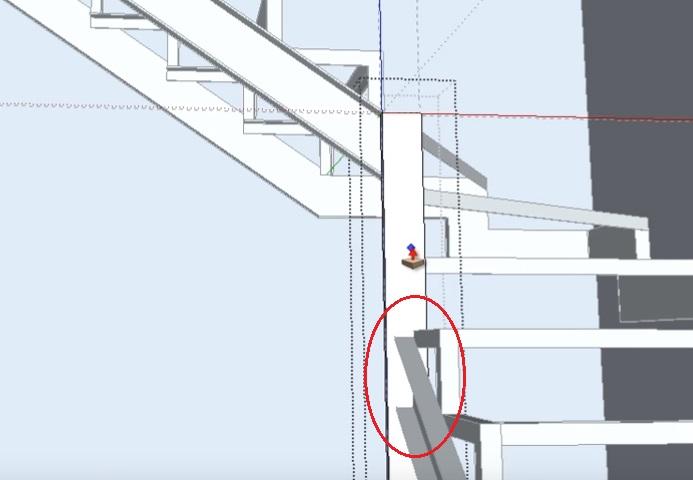 Чтобы дальше было удобнее работать, лучше временно удалить мешающие плоскости пола и стены вдоль нижнего пролета лестницы. Сначала выделяем плоскость пола.