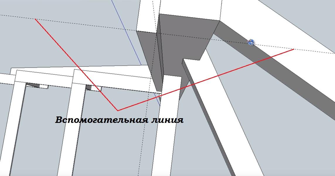 Проводим горизонтальную вспомогательную линию по верхнему краю опорного столба.