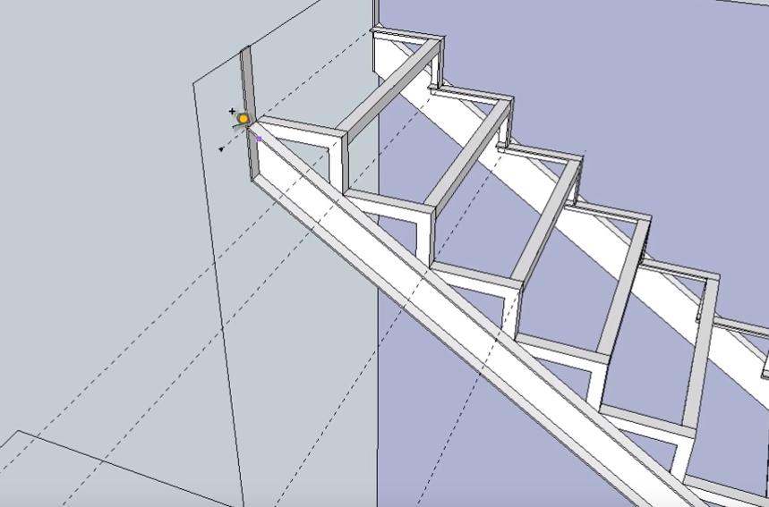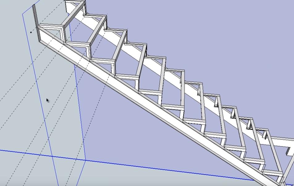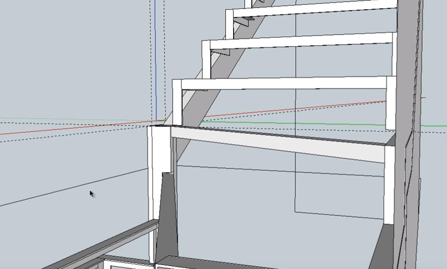 Данный цикл уроков поможет вам самостоятельно спроектировать деревянную лестницу на металлическом каркасе на второй этаж в программе 3D-моделирования ScetchUp-8. Об основных функциях и возможностях этой программы мы рассказали в Уроке № 1. Металлический каркас мы сконструировали в Уроках № 2 и № 3. Теперь же мы начинаем прорисовывать и устанавливать элементы деревянной обшивки лестницы: облицовочные доски, подступенники и ступени. Этому будут посвящены данный 4-й урок и следующий 5-й. В самом конце приведены ссылки на дополнительные материалы, которые помогут вам самостоятельно разработать проект и построить по нему, практически, любую лестницу с теми параметрами, которые наиболее подходят для вашего дома.