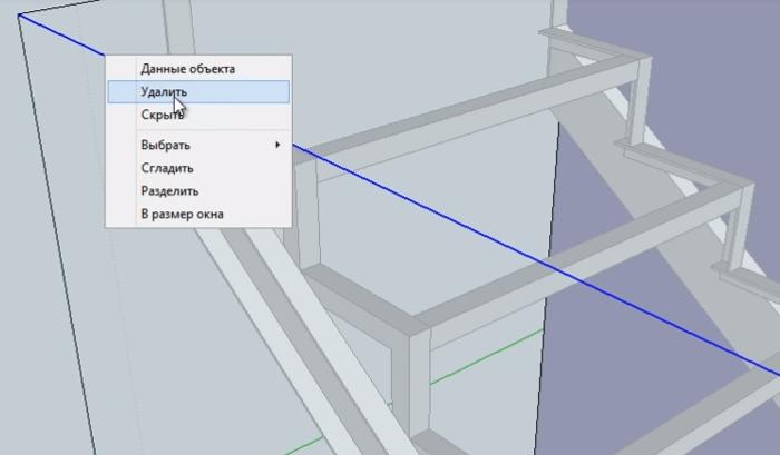 Для удобства работы временно удаляем линию лестничного пролета, идущую вдоль косоура.