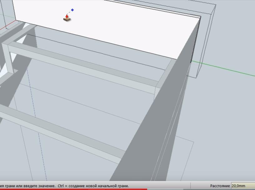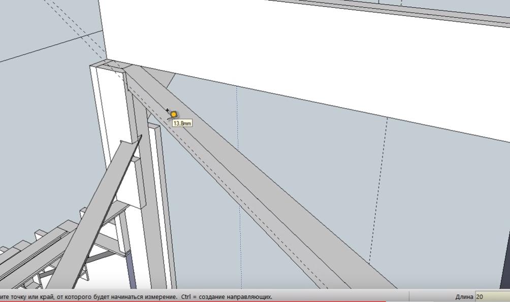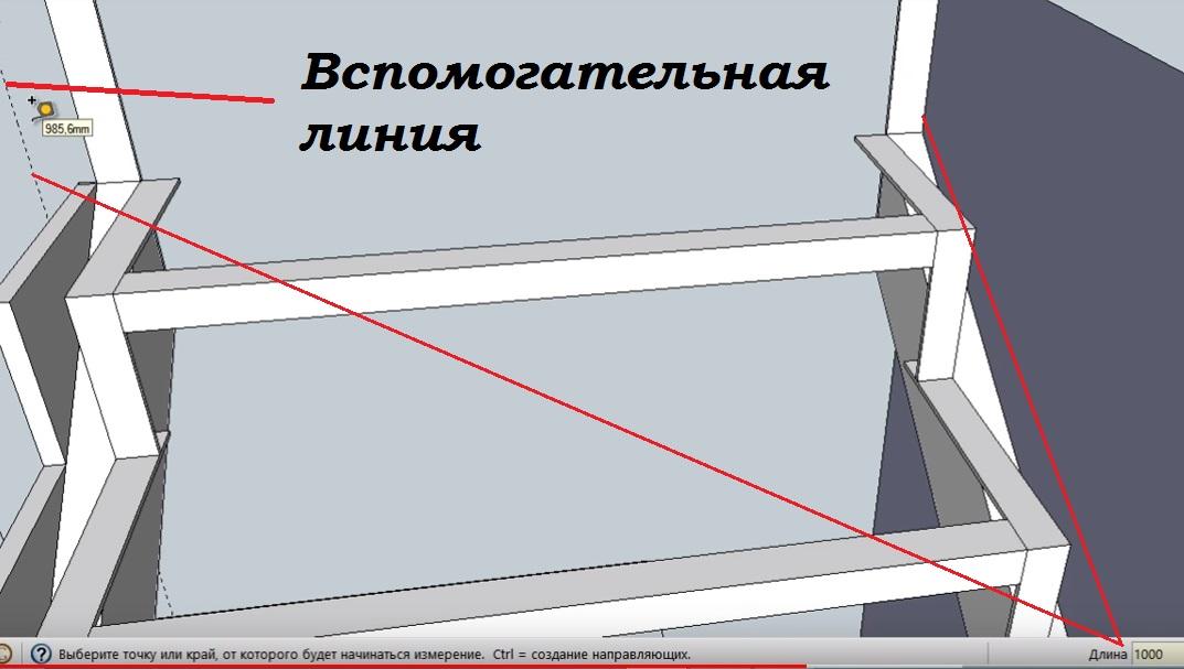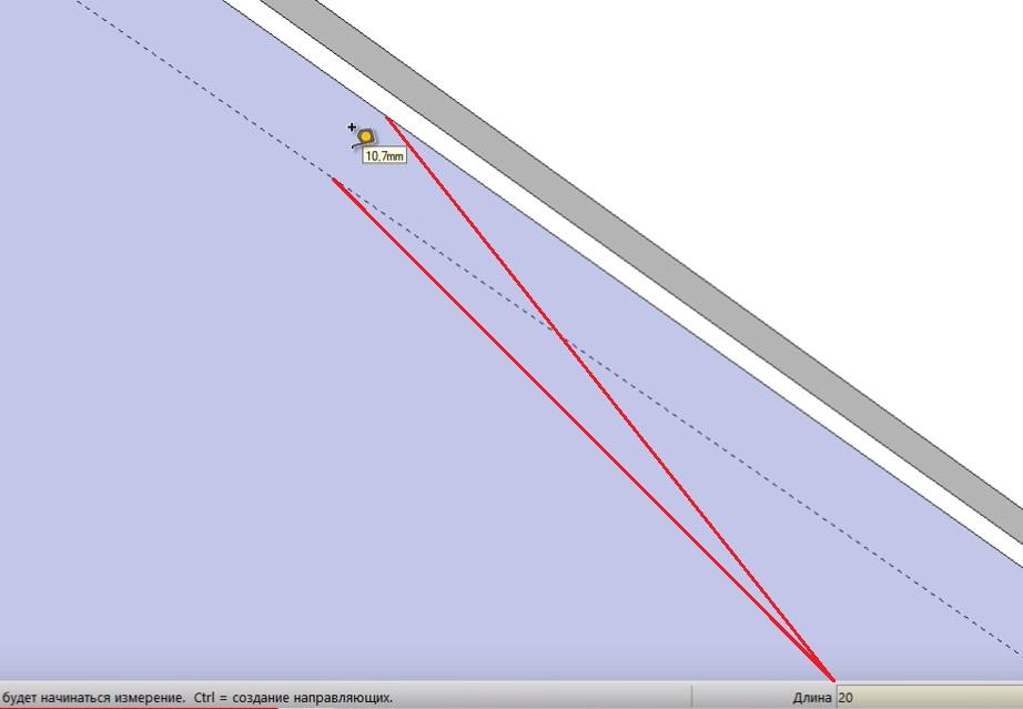 Теперь рисуем вспомогательную линию под внешним швеллером на расстоянии 20 мм.