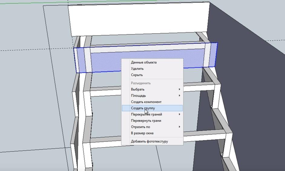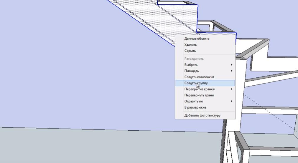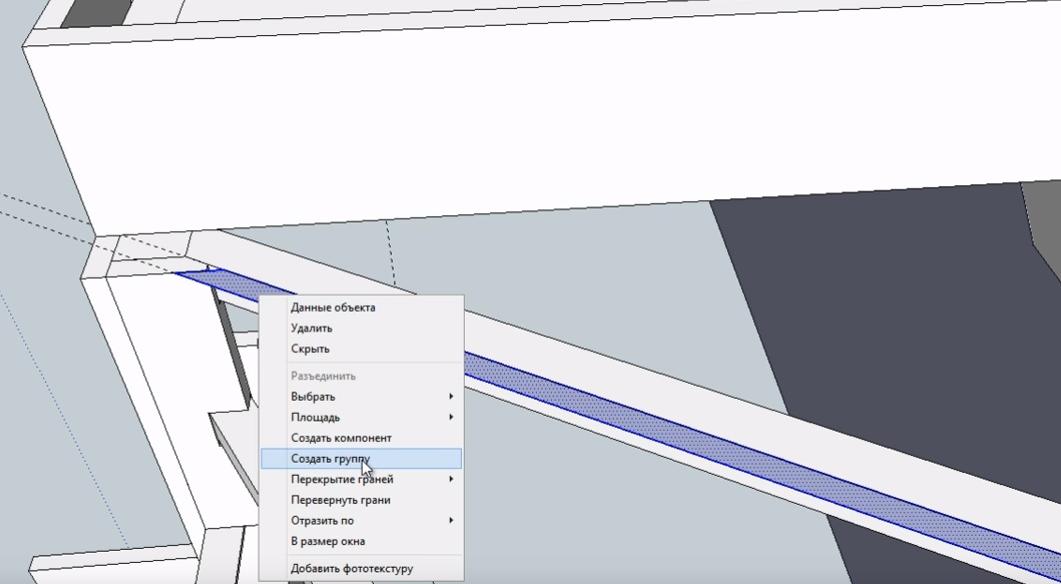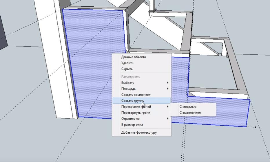 Выделяем прорисованную плоскость и создаем из нее “Группу”.