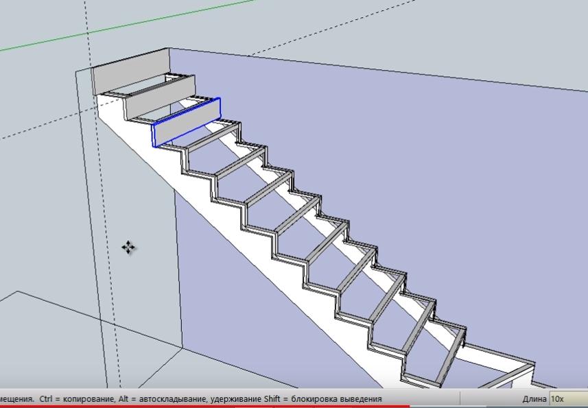 Чтобы установить остальные 10 ступеней, используем функцию множественного копирования. Т.е. как уже делалось раньше, копируем ступень и начинаем переносить ее на уровень ниже.