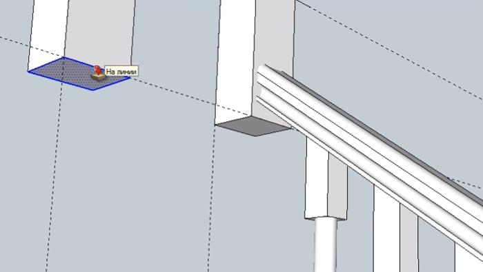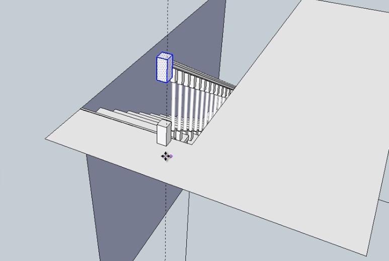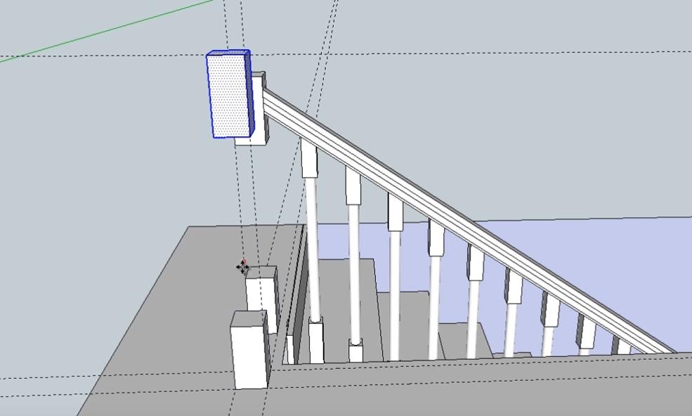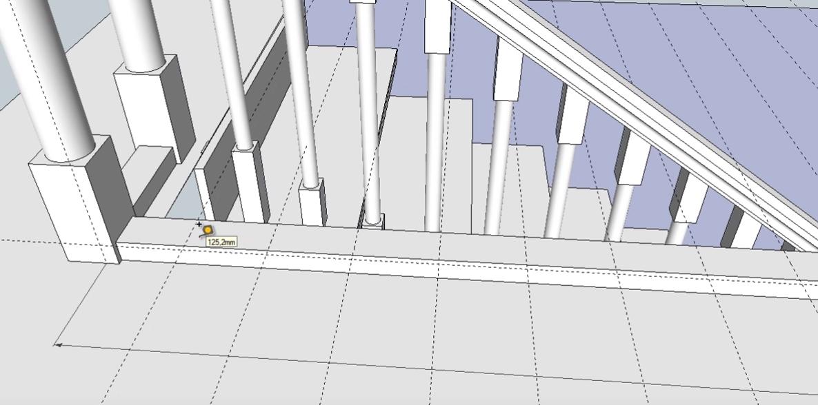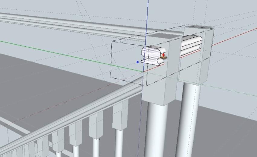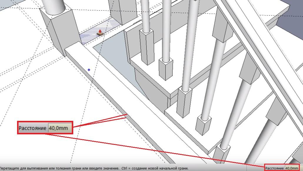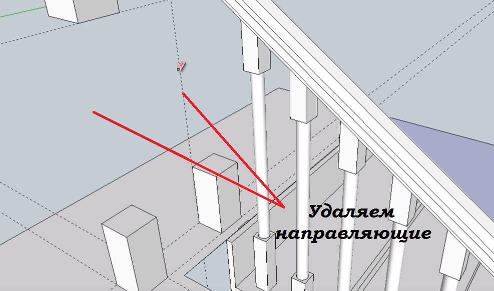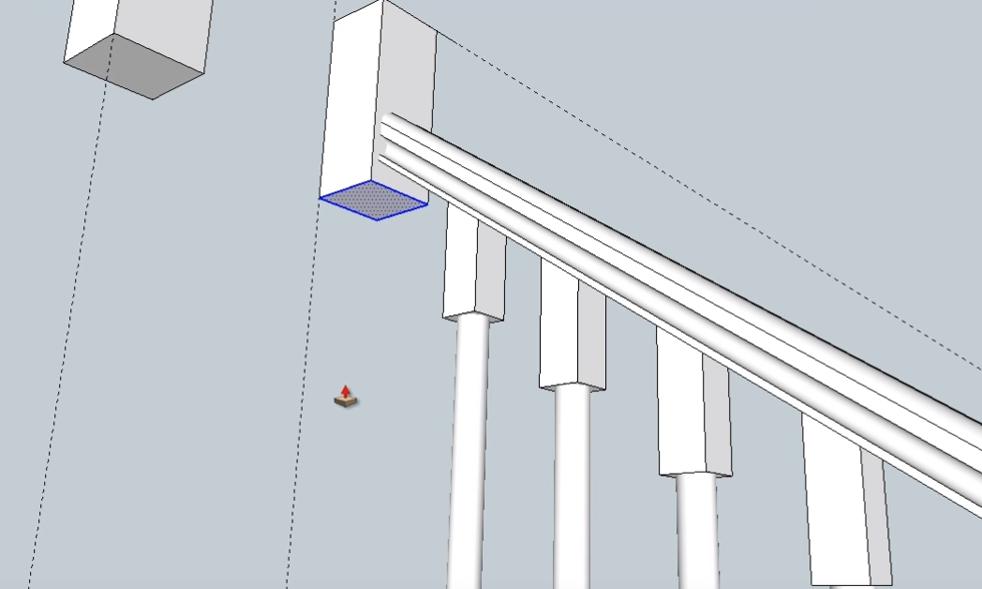И при помощи инструмента Push-Pull укорачиваем данный компонент, а вместе с ним и все его копии, до нижнего края поручня.