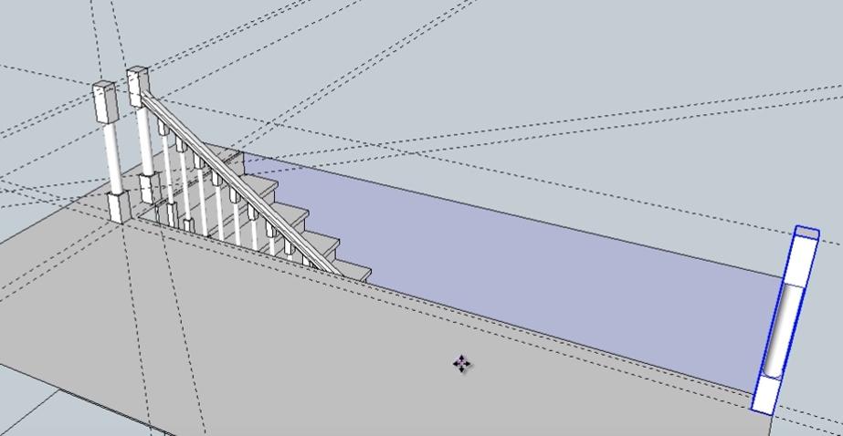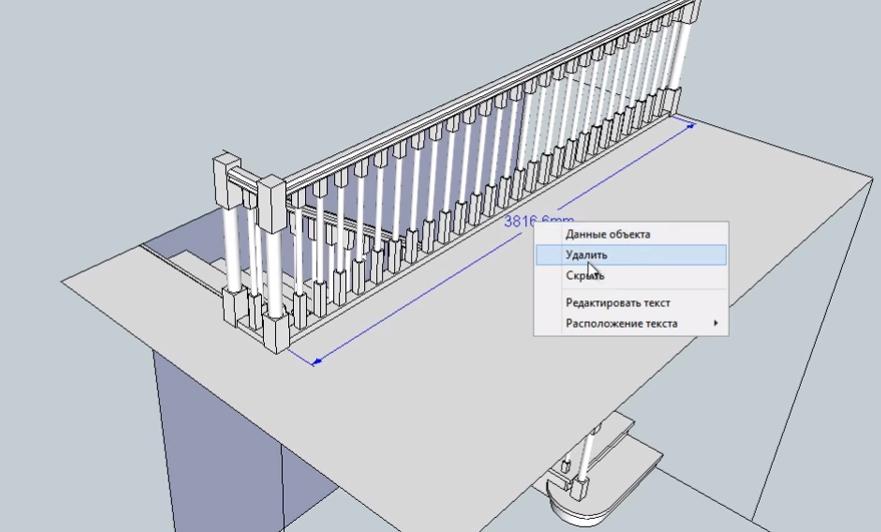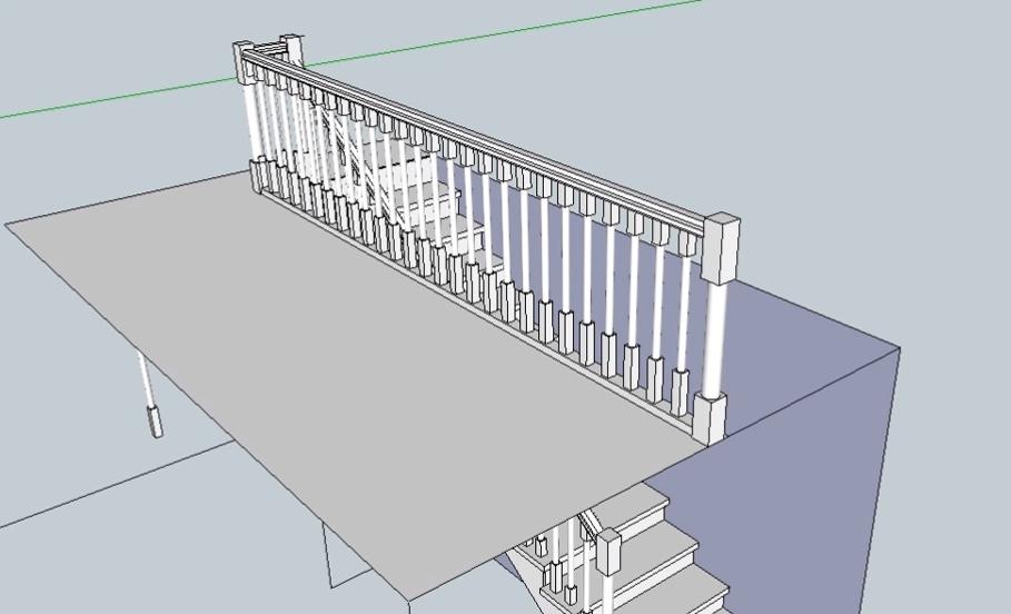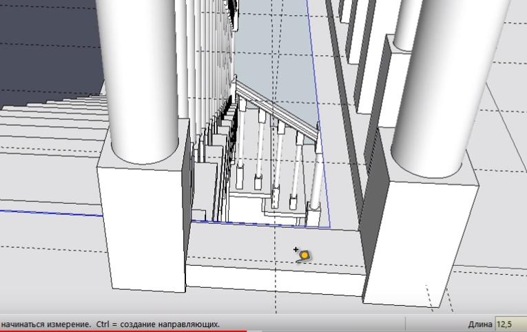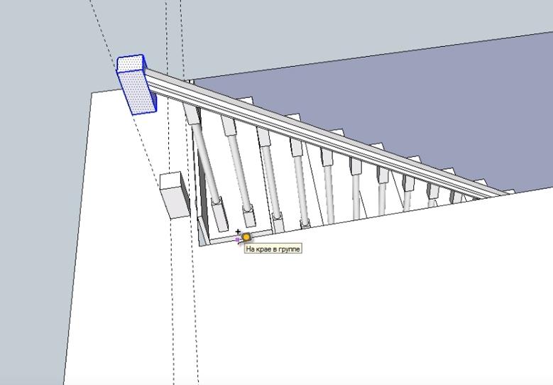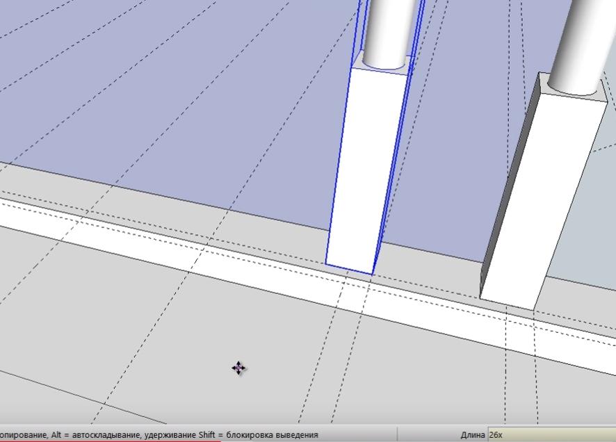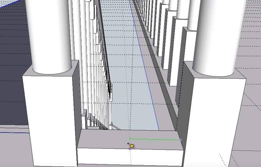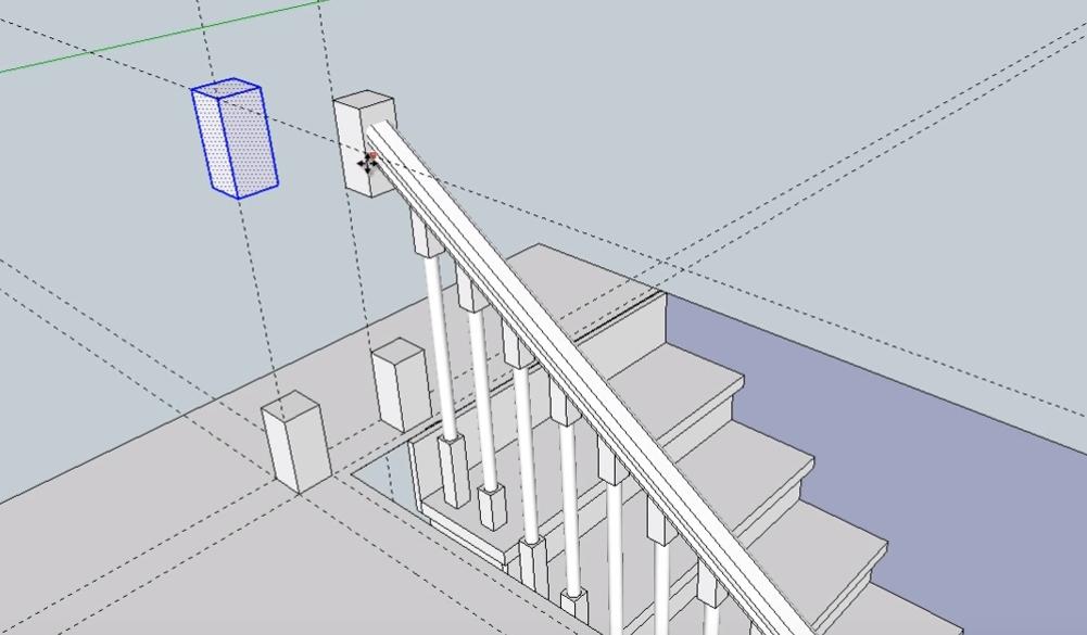 И при помощи инструмента Push-Pull укорачиваем данный компонент, а вместе с ним и все его копии, до нижнего края поручня.