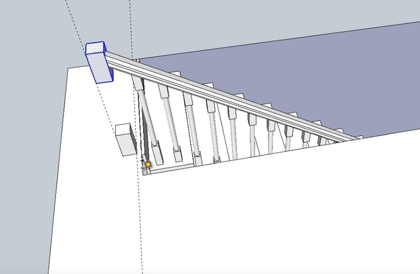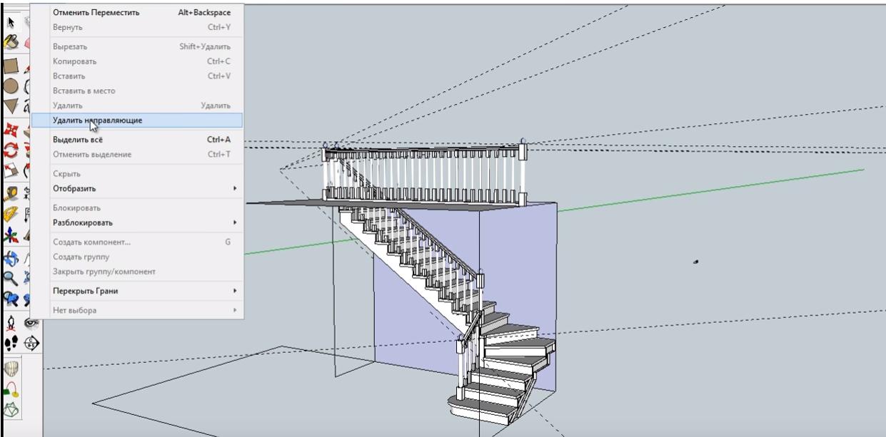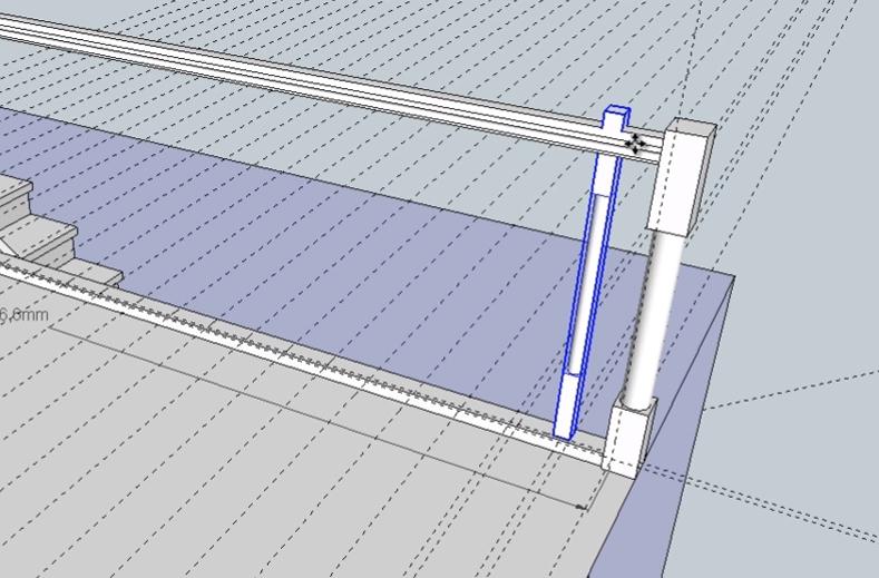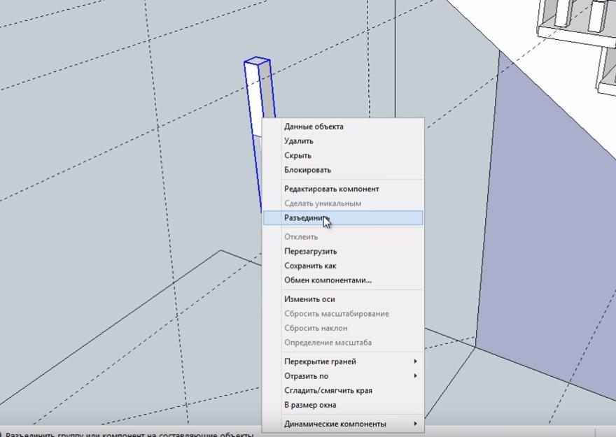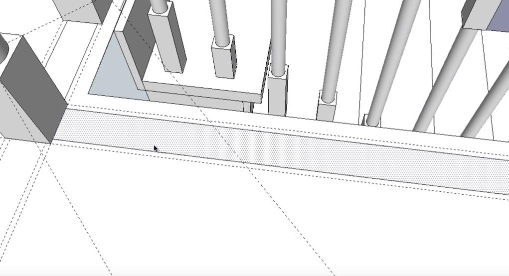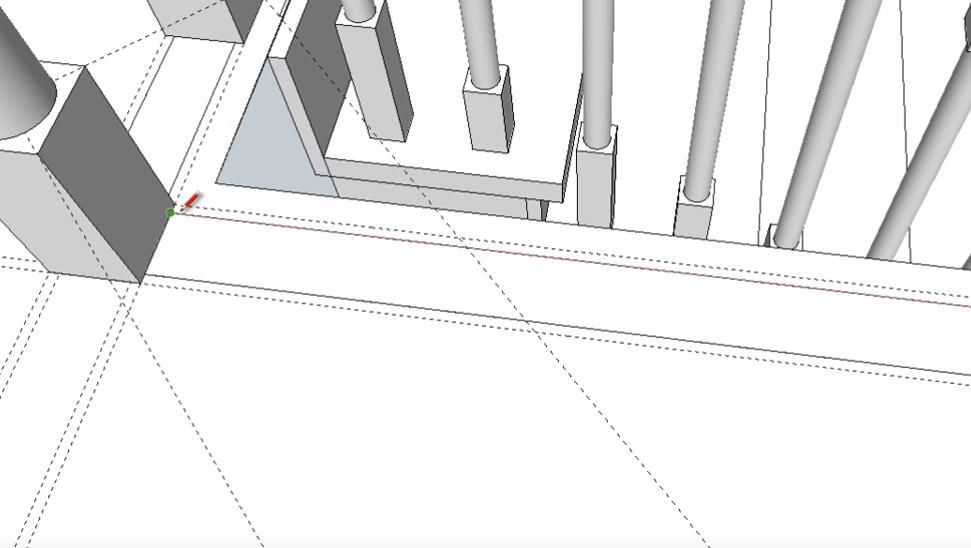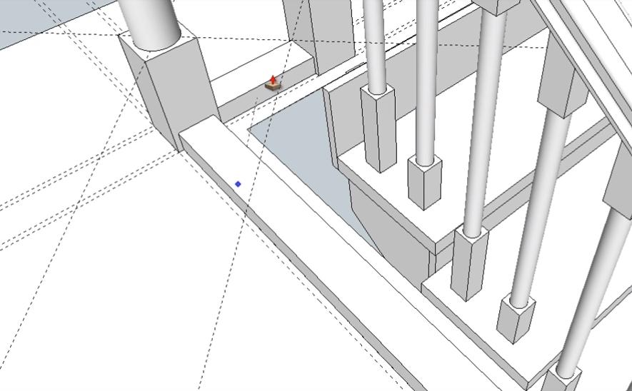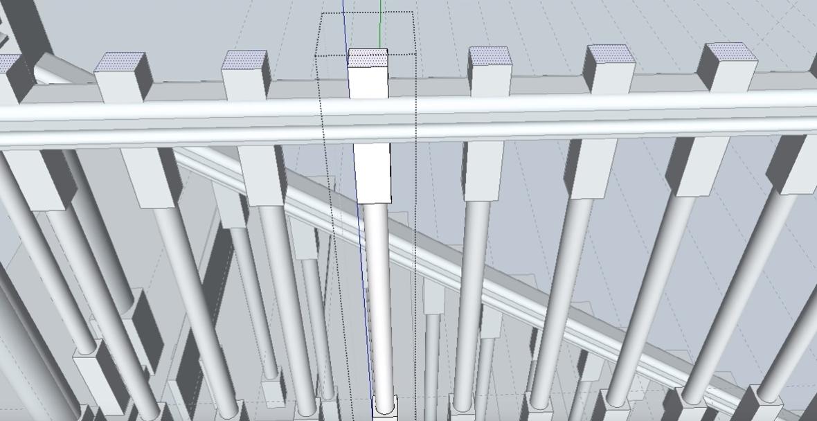 И при помощи инструмента Push-Pull укорачиваем данный компонент, а вместе с ним и все его копии, до нижнего края поручня.