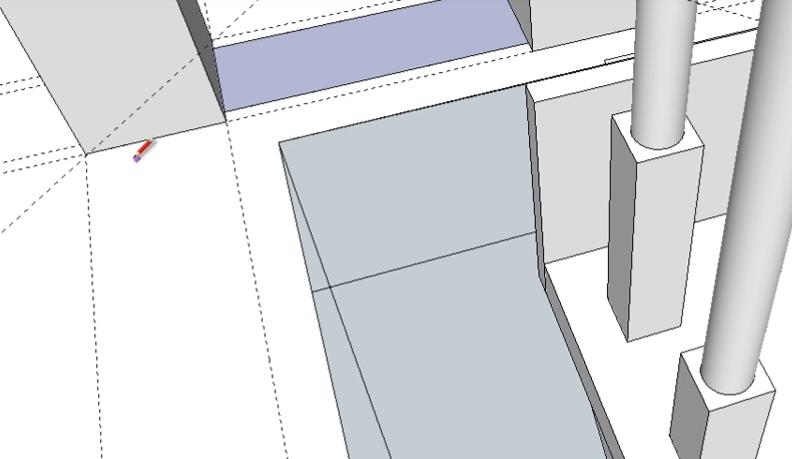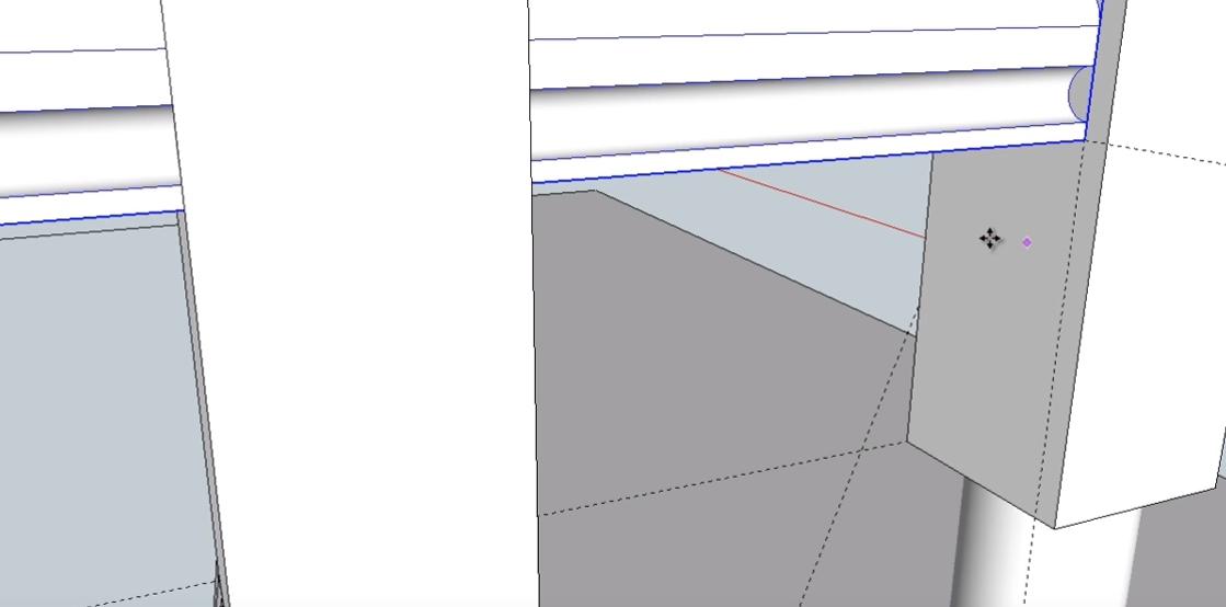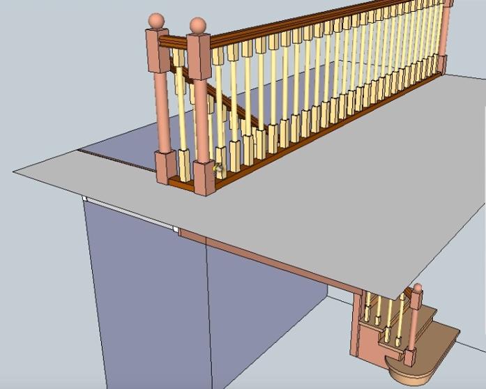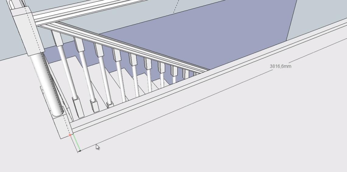 При помощи инструмента Push-Pull удлиняем поручень перил балюстрады до соединения с опорным столом у стены.