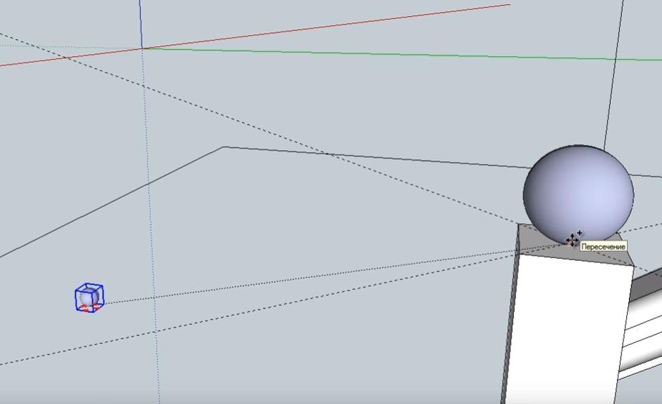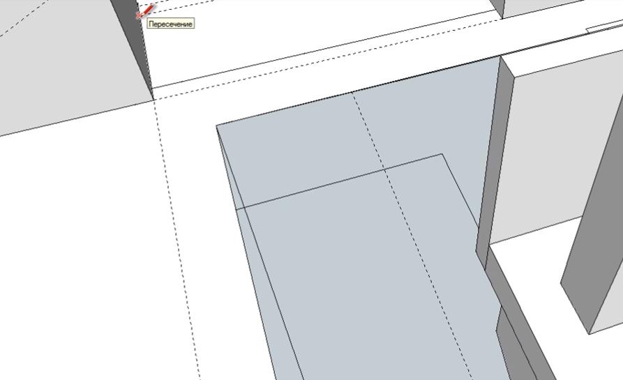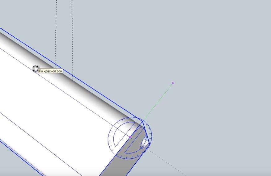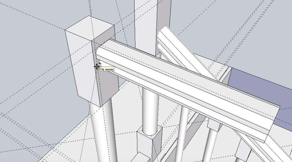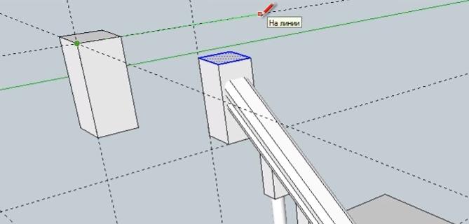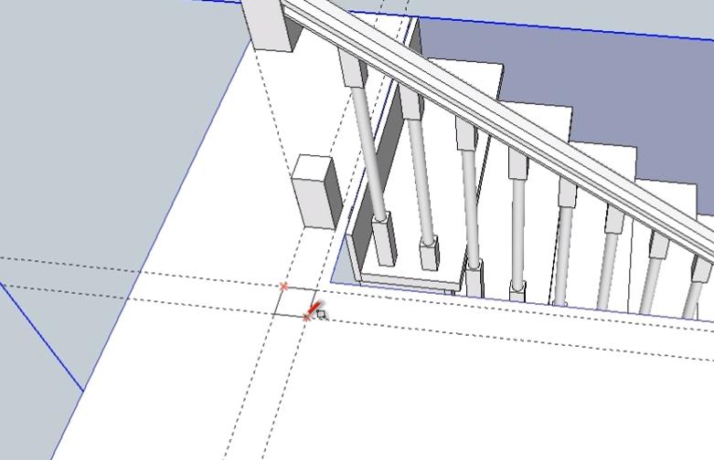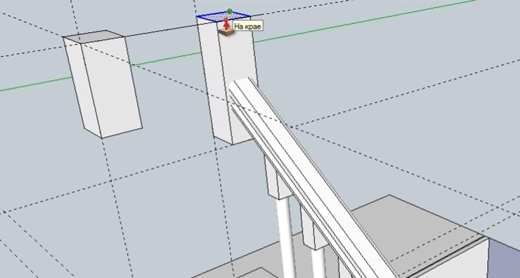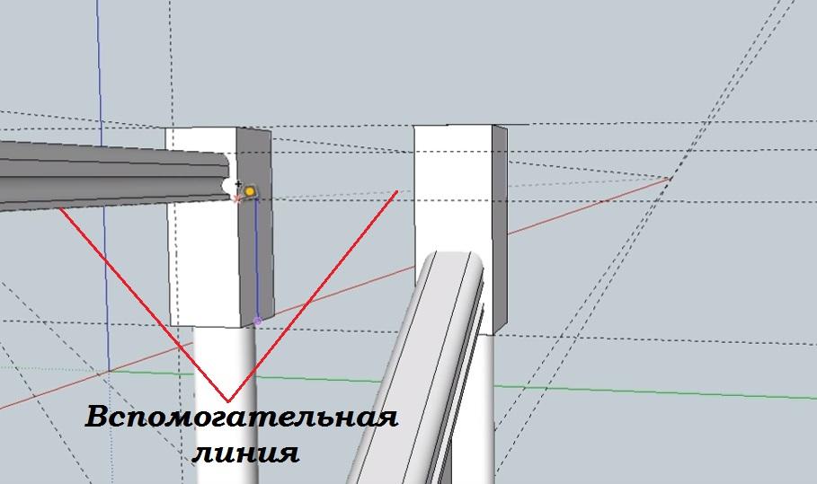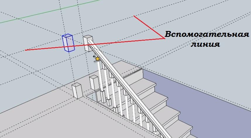Устанавливаем поручень на место пересечения вспомогательных линий.