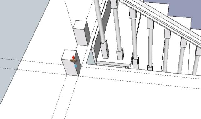 Чтобы начать устанавливать собственно балюстраду, нужно поставить последний опорный столб. Копируем один из опорных столбов и переносим его к стене, где оканчивается лестничный проем.