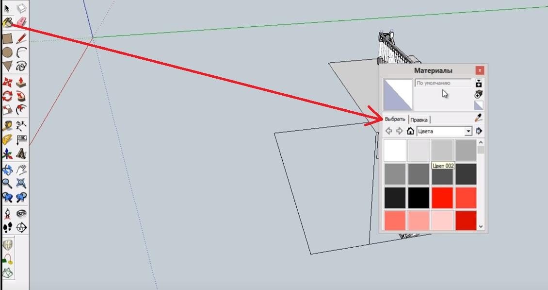 В нашем случае мы не окрасили облицовочные доски опорного столба. Наводим “Пипетку” на облицовочную панель и кликом кнопки мышки снова выбираем этот цвет.