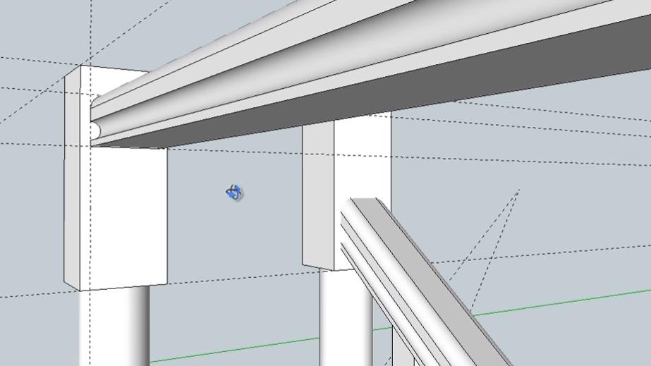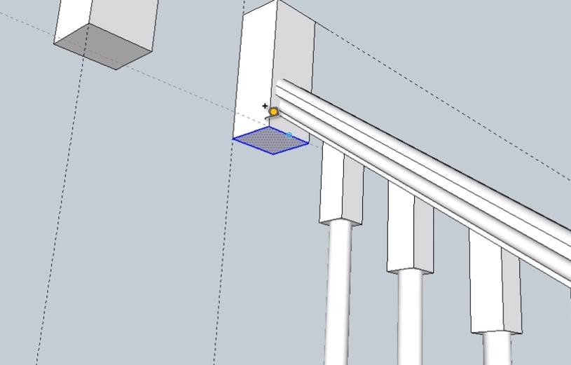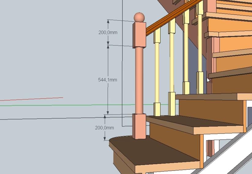 Мы начертили верхний и нижний элементы столба у верхнего окончания перил лестницы.