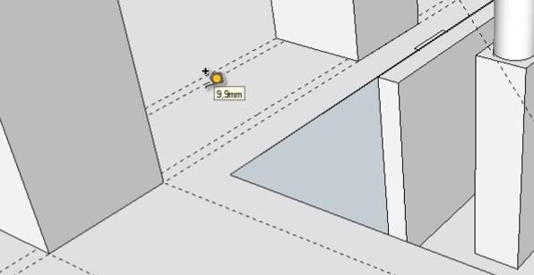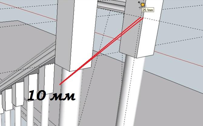 Теперь нам необходимо установить поручень. Его ширина составляет 70 мм, поэтому от одной из сторон верхней части опорного столба балюстрады откладываем 10 мм (90 мм - 700 мм = 20 мм и 20 мм / 2 = 10 мм).
