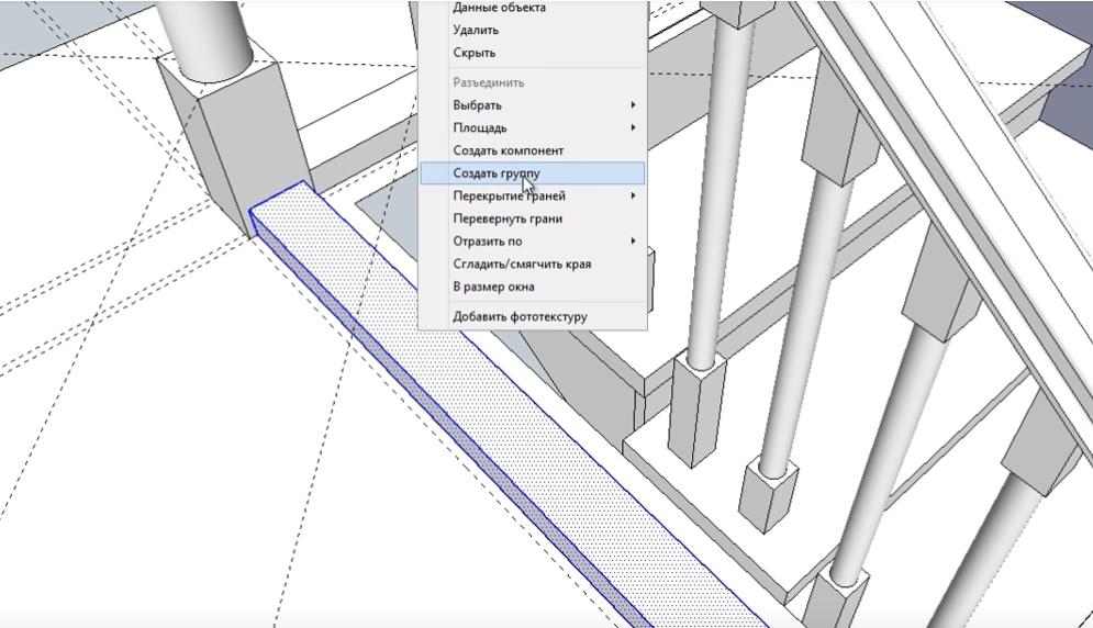 Все сгруппированные элементы окрашиваются сразу целиком. Это еще одна причина, по которой все элементы лестницы нужно группировать.