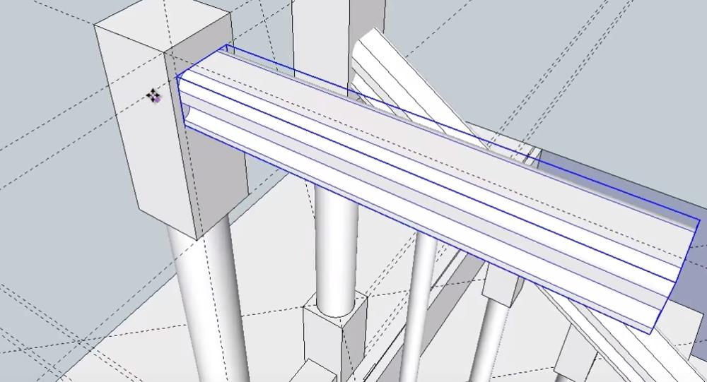 Удлиняем и опускаем до этой линии верхнюю часть второго опорного столба.