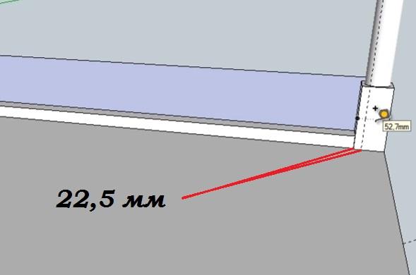 Откладываем дополнительные вспомогательные линии. Одну на расстоянии 22,5 мм от нарисованных линий, обозначающих середину балясин (достаточно сделать это на одном отрезке для установки двух балясин).