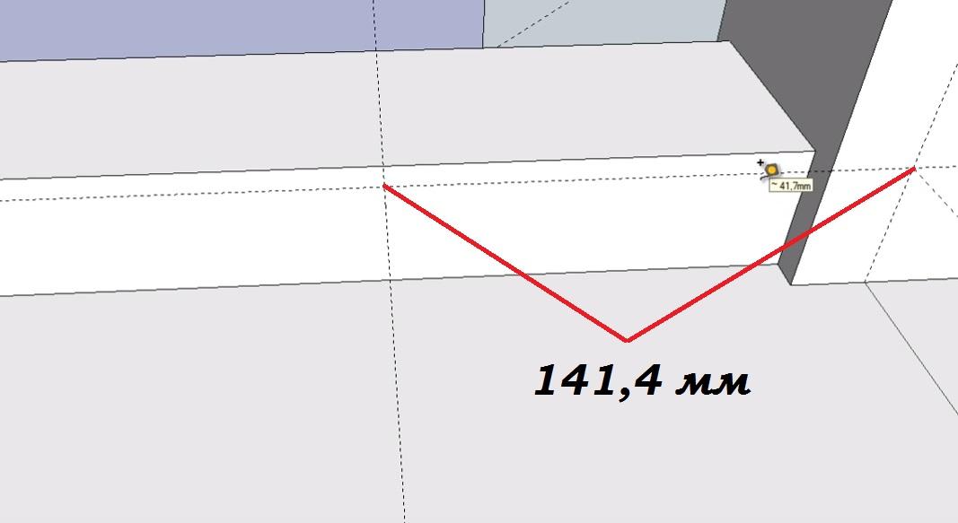 Замеряем получившееся расстояние и получаем 3816,6 мм.