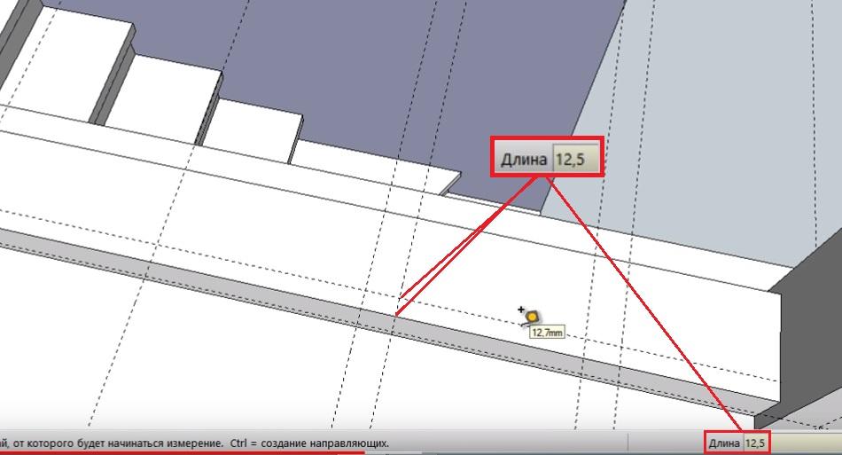 Опять откладываем вспомогательную линию на 12,5 мм.