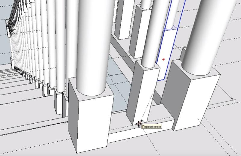 То же самое проделываем по линиям между двумя дальними столбами балюстрады.