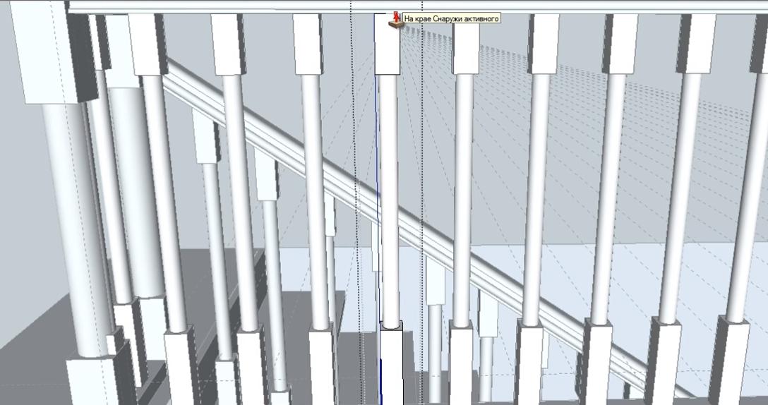 Чтобы убрать выступающие поверх поручня части балясин, достаточно выделить всего лишь одну из них.