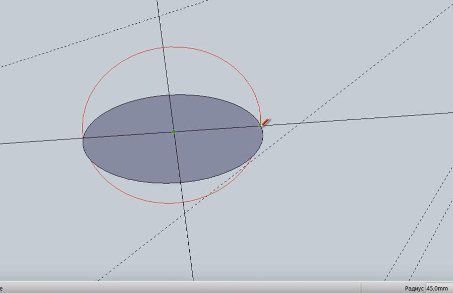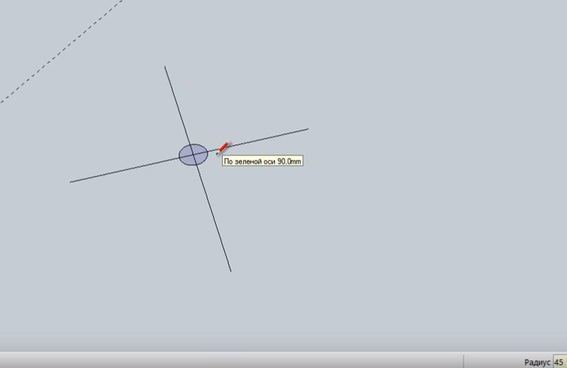 Чтобы сделать 3D-модель шара, в любом месте рабочего стола чертим перекрестие из линий, и из его центра рисуем круг с радиусом 45 мм.