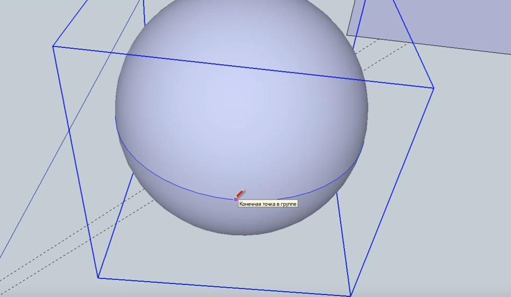Из созданного объекта - шар формируем группу. Чтобы определить его центр, можно просто навести курсор и найти место, где появится надпись “Конечная точка в группе”.
