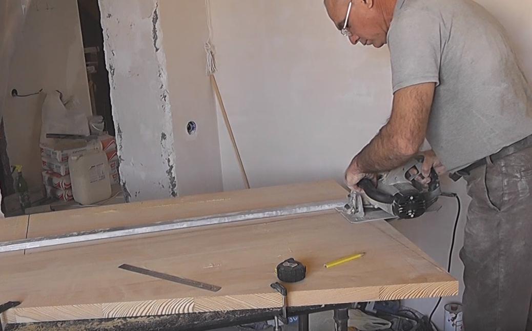 По прямым линиям обрезаем ступень при помощи циркулярной пилы.