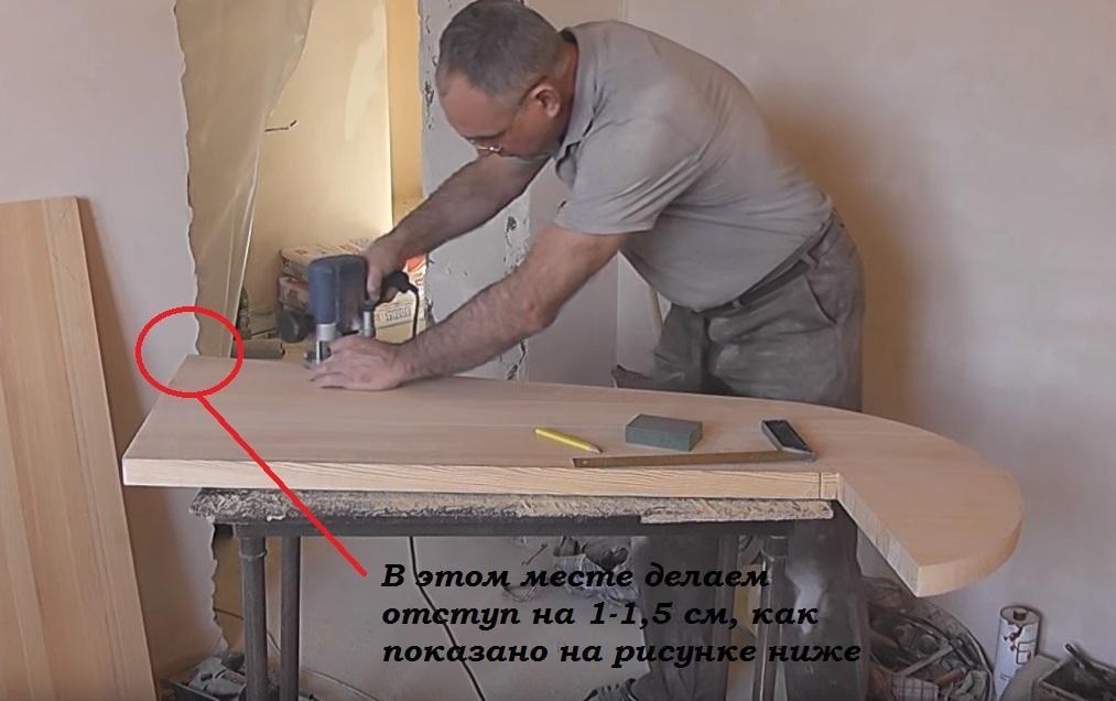 Кромки обрабатываем не от самого края! В месте соприкосновения со стеной оставляем 1-1,5 см под облицовочную доску.