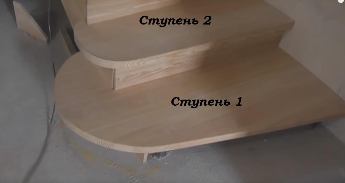 Забежные ступени всегда начинаем изготавливать с первой и уже потом, делаем вторую.