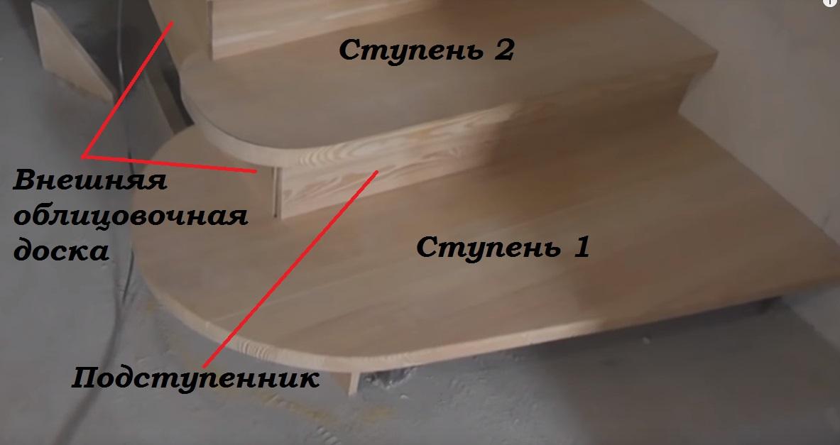 Подступенник второй ступени ставится поверх первой ступени таким образом, чтобы он плотно ее прижимал-подклинивал.