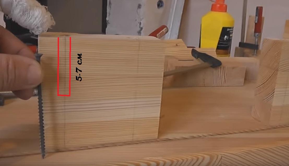 Мы прорезали паз под фанеру глубиной около 1 см и вдоль паза установили стойки, к которым в дальнейшем будет приклеиваться фанера.