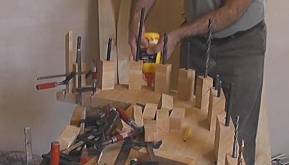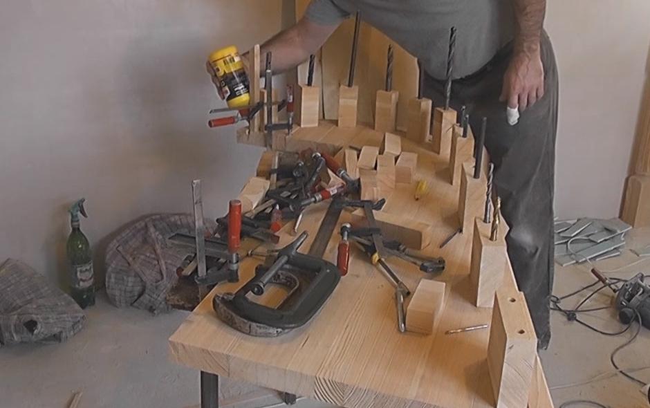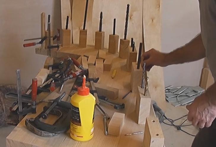 Делал я это следующим образом: брал перовое сверло и насверливал им в стойках отверстия, глубиной примерно в 5-7 см.