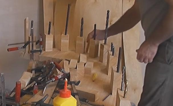 Для того, чтобы увеличить высоту стоек, в просверленные отверстия можно вставить сверла или обрезки арматуры и наложить на них доски, поверх которых будут крепиться струбцины.