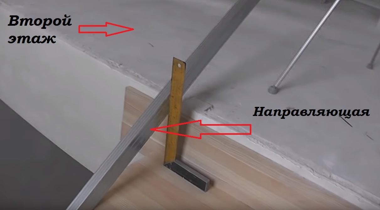 Также на каждой балясине по установленной направляющей делается отметка, обозначающая линию обрезки под устанавливаемый поручень.
