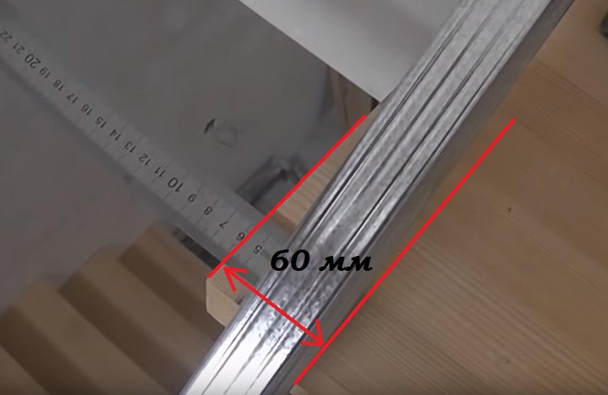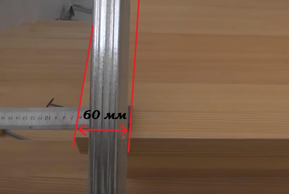 Чтобы не было никаких отклонений, от бокового края верхней ступени откладываю 60 мм.