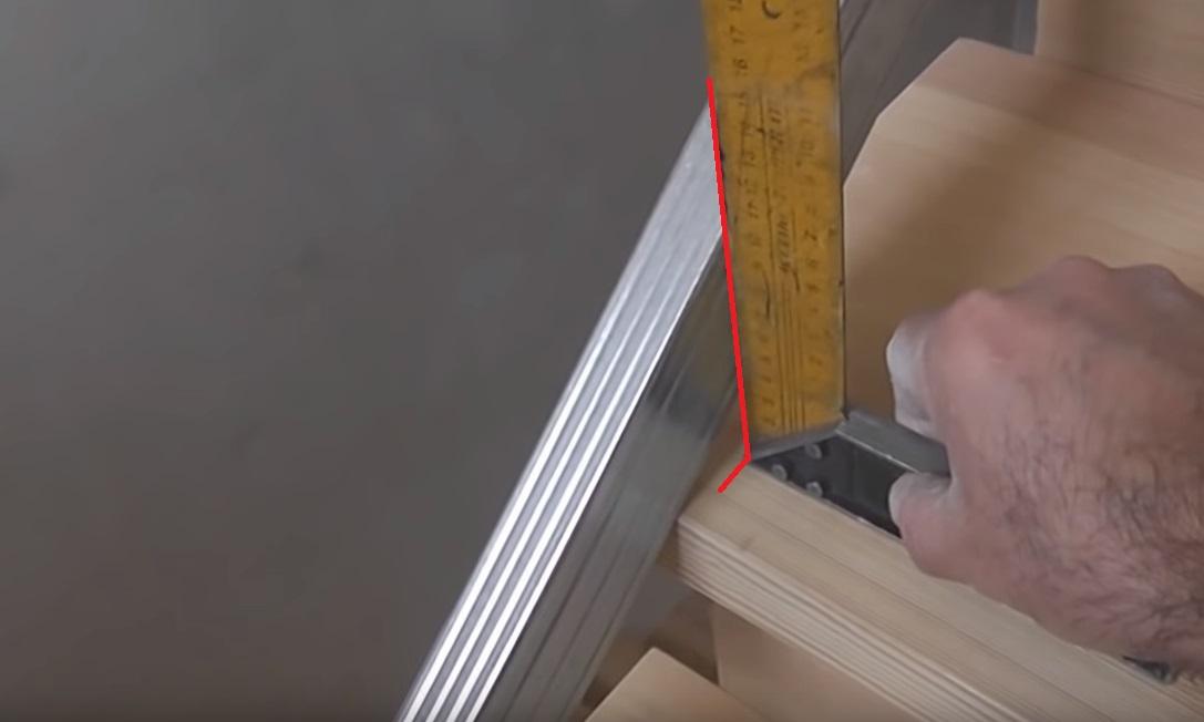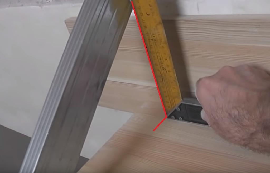 Переходим к тому, как расставлять балясины. Вновь берем уголок и делаем отметку на второй ступени.