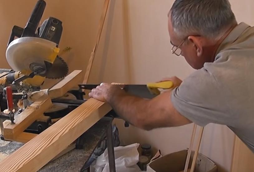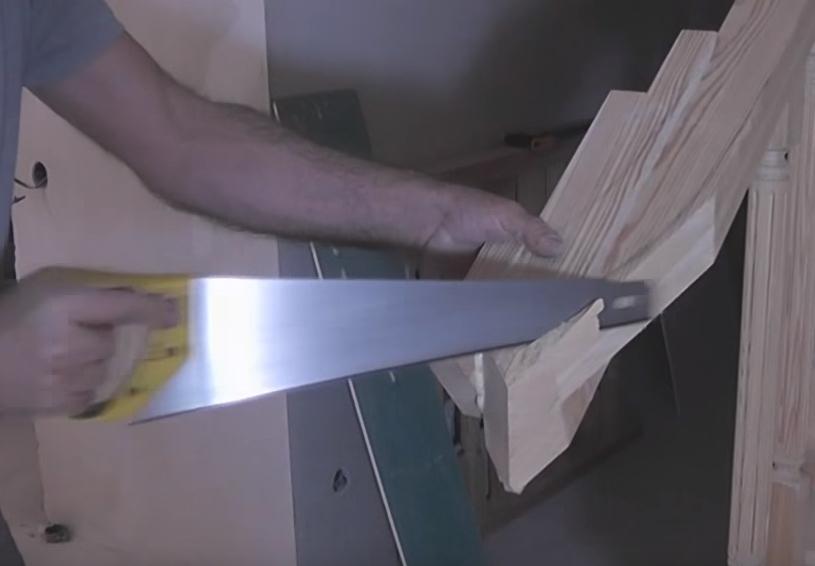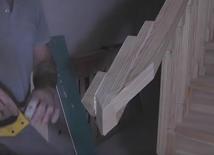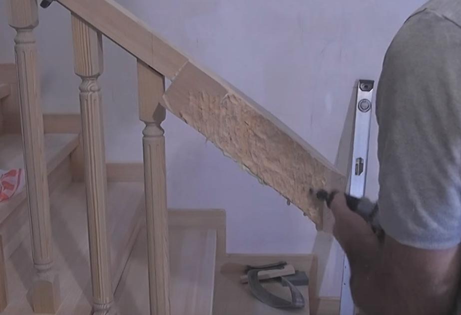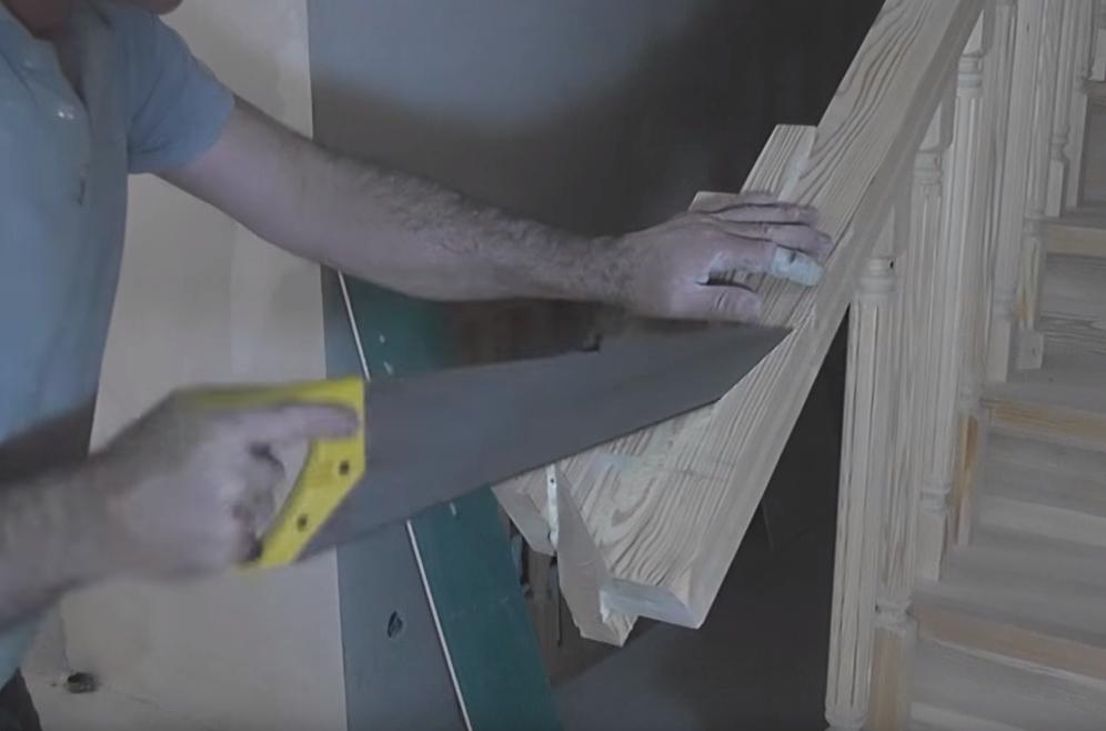 После этого отпиливаем край поручня.