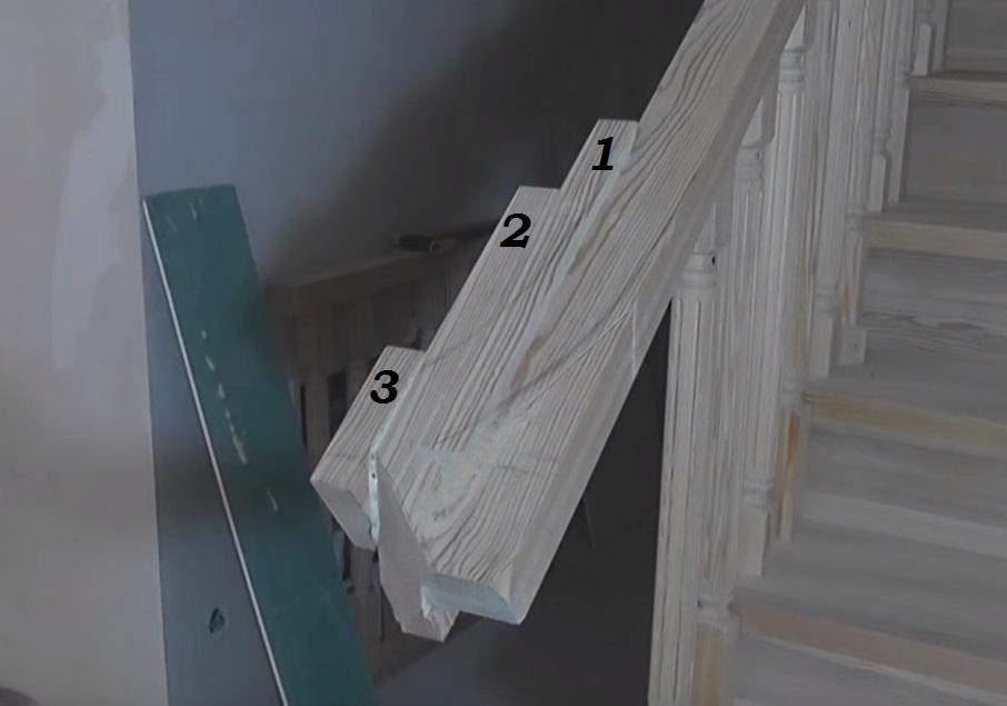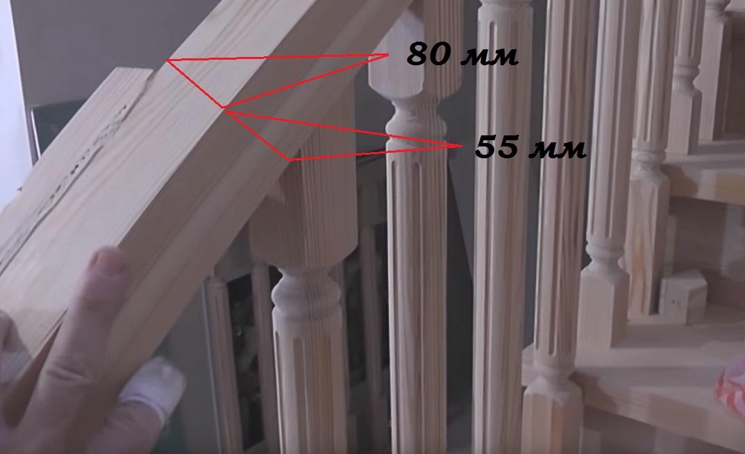 В качестве заготовки под поручень мы используем обычный брус 80 х 55 мм.