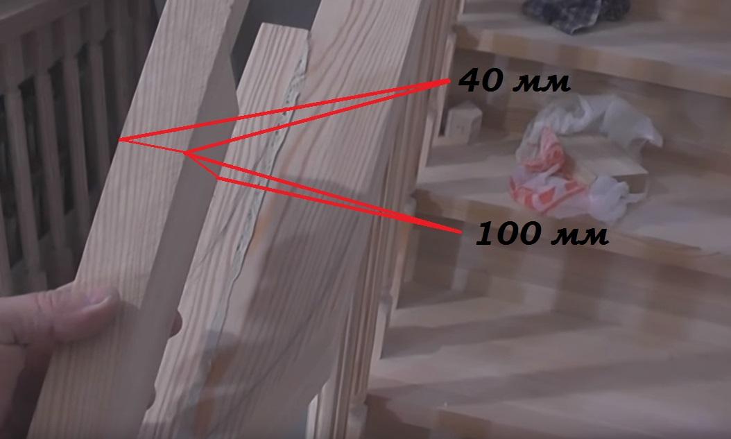 Расстояние от ступенной доски до балясины у нас получается 4,5 см.
