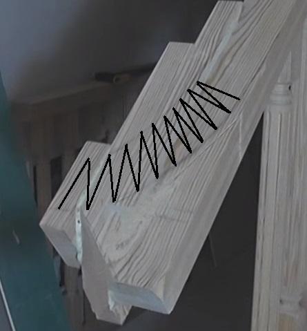 Немного подрезаем край поручня и убираем мешающий выступ-шишечку. После устранения этого недостатка поручень плотно прилегает и к верхнему столбу. При обтяжке крепежом элементы конструкции будут прилегать друг к другу еще плотнее.